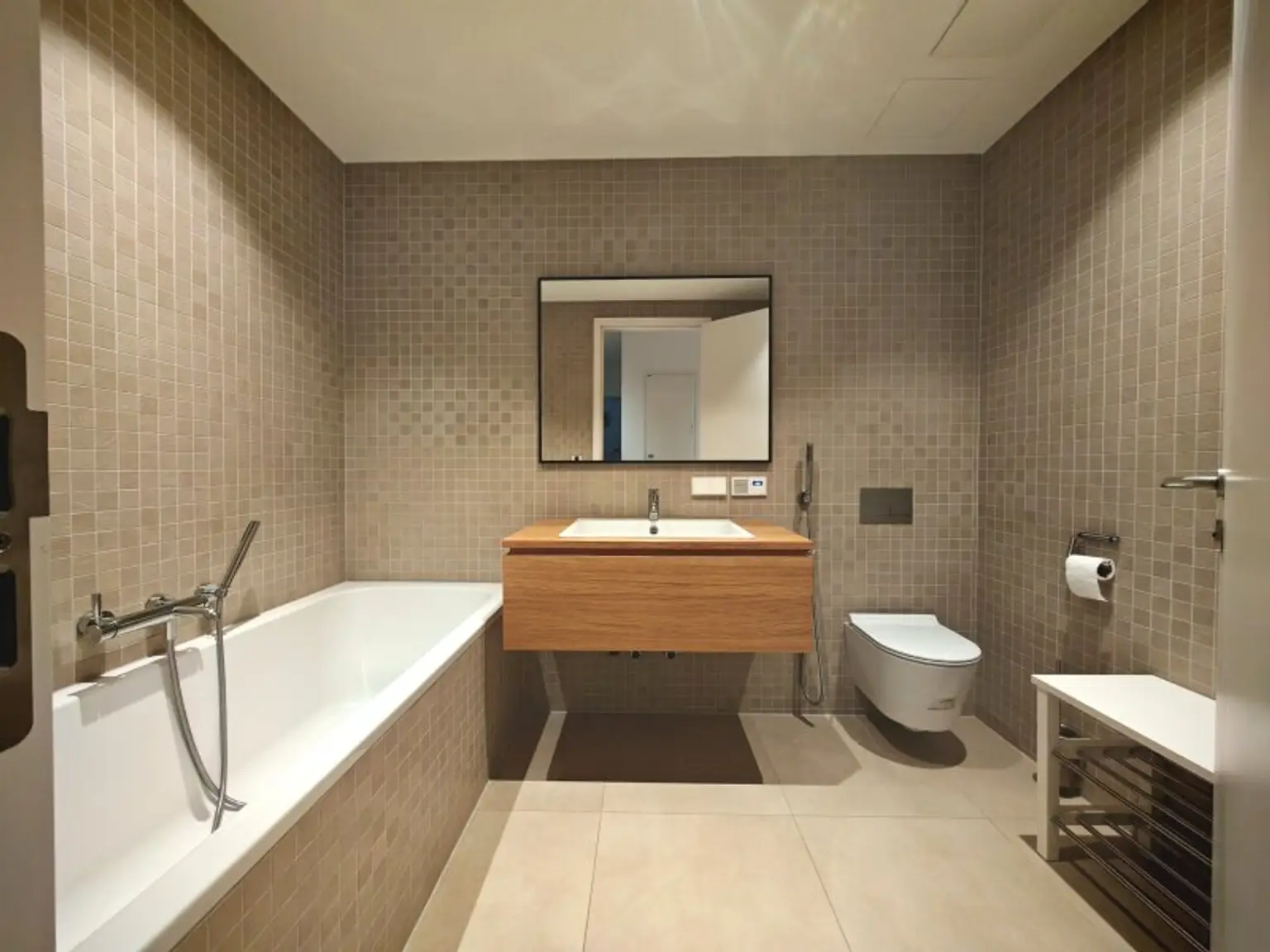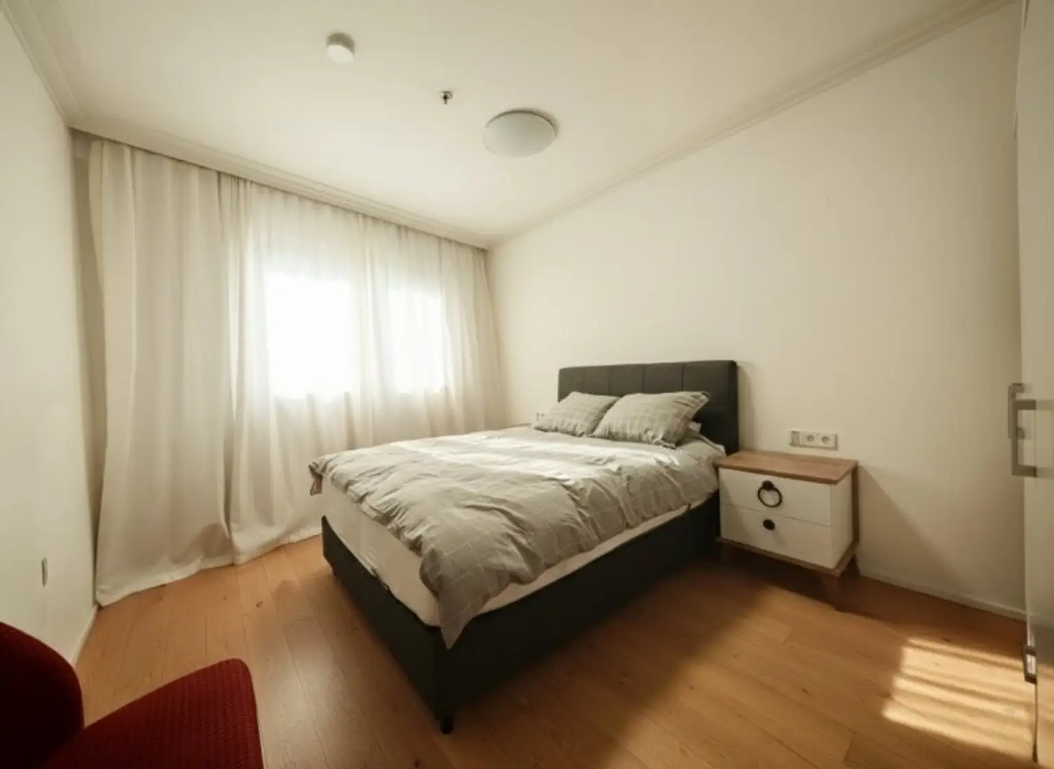 Sie ist weitläufig und hell, mit 2 Schlafzimmern ideal für Kleinfamilien bis zu 3 Personen bzw. Singles oder Pärchen. Die Ausstattung bietet alles, was man zum komfortablen Leben auf Zeit benötigt, ohne auf zu-Hause-Gefühl verzichten zu müssen: geräumiger Vorraum, 2 voll ausgestattete Schlafzimmer, zwei Bäder (Dusche und Wanne) mit zwei Toiletten (eine davon getrennt vom Bad), offene Wohnküche mit praktischer Küchenzeile, Esstisch, gemütliche Sitzgarnitur und südseitiger Balkon mit Sitzmöglichkeit zum Verweilen, viele Kleiderschränke, bequeme Betten und weitere notwendige Utensilien und Einrichtungsgegenstände.