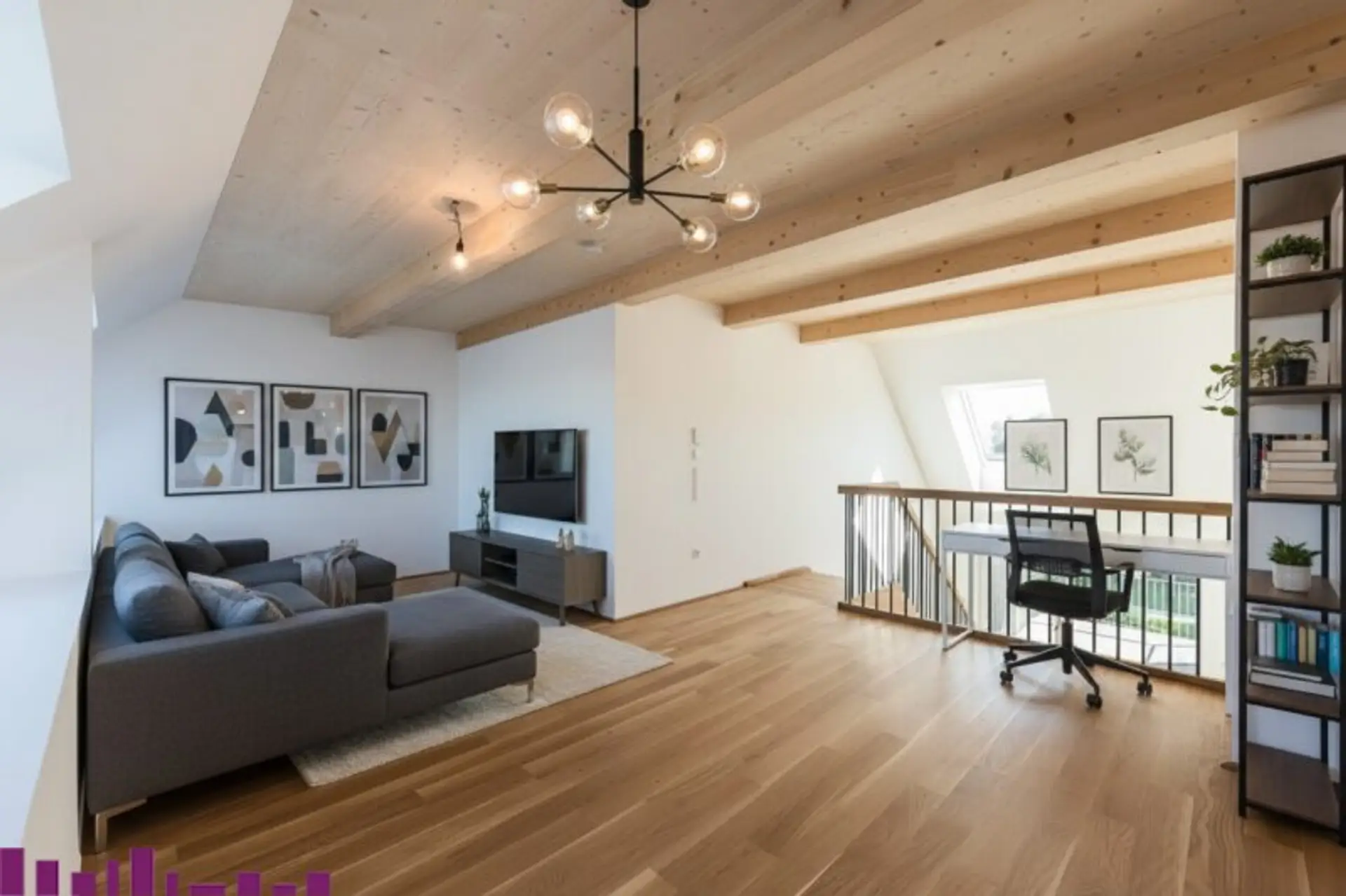 Ein besonderes Highlight dieser Wohnung ist die großzügige Galerie (24,50 m²), die sich ideal als Wohn- oder Arbeitsbereich nutzen lässt. Die offene Gestaltung und die zusätzlichen Fensterflächen verleihen diesem Bereich eine besonders luftige und freundliche Atmosphäre.