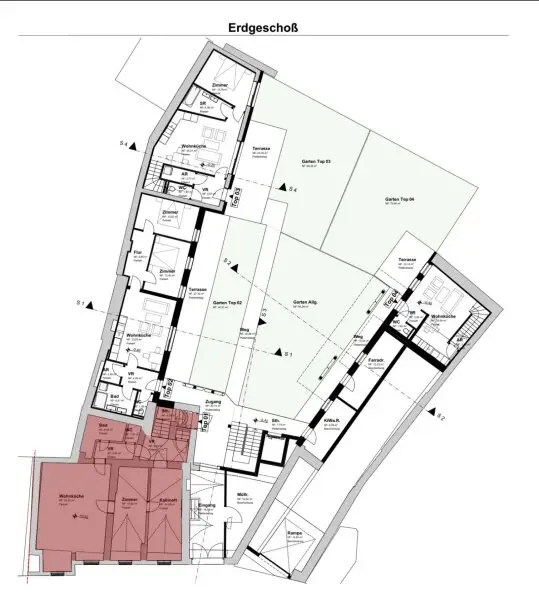 * Kellerabteile, Fahrrad- und Kinderwagenabstellraum