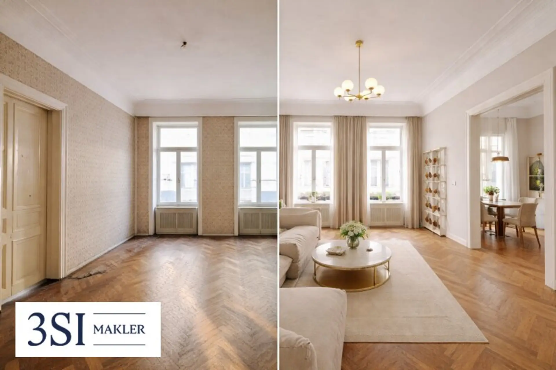Aktuell stehen zusätzlich eine Herrschaftswohnungen mit 228 m² und eine Stilaltbauwohnung mit 132 m² - im unsanierten Originalzustand - zum Verkauf. Optional können diese auch im selben Sanierungsstil wie die anderen Erstbezüge erworben werden.