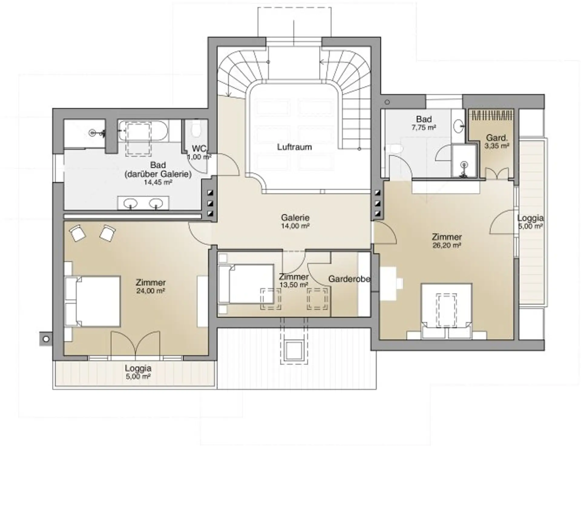 Auf einem großzügigen Grundstück von rund 2.848 m², bestehend aus zwei Parzellen – wobei eine zusätzliche Bebauung möglich –, bietet die Villa etwa 400 m² Wohnfläche. Zwischen 2019 und 2022 wurde das Gebäude umfassend und hochwertig kernsaniert: Sämtliche Leitungen, Dach und Dämmung wurden erneuert, moderne Dachflächenfenster integriert sowie eine Lift-Vorbereitung umgesetzt. Eine Kühldecke in den Schlafräumen sorgt für angenehmes Raumklima.