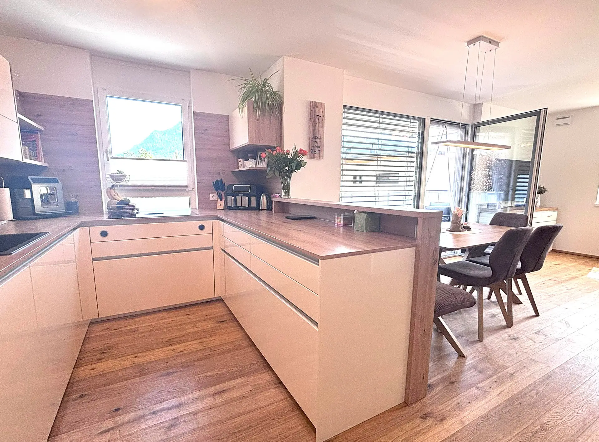-Heller Wohn-Essbereich mit moderner Einbauküche
