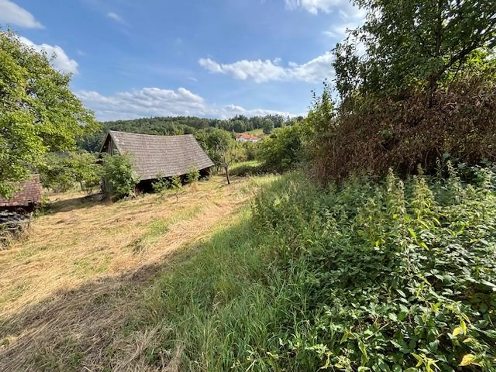 Auf dem großen Grundstück, ca. 5.465 m², kann man seine Gartenträume verwirklichen -diverse Obstbäume und ein sanierungsbedürftiger Schuppen sind vorhanden. Durch die Hanglage und das Süd-Westgefälle des Gartens, ist die Sonne fast immer zu sehen, inklusive einem beeindruckenden Fernblick!