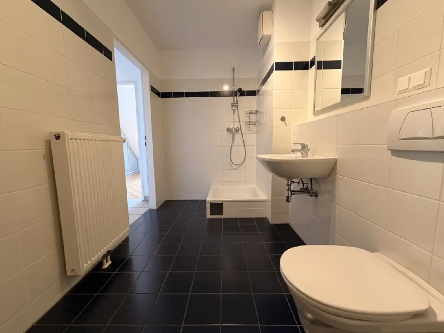 * 1. Obergeschoss, ca. 30,60m² gesamt: Vorraum + 1 Schlafzimmer mit ca. 19m² und DIREKTEM Zugang auf die Richtung SÜDEN orientierte ca. 5m² große TERRASSE + Badezimmer mit Wanne und Waschmaschinenanschluss + 1 WC separat