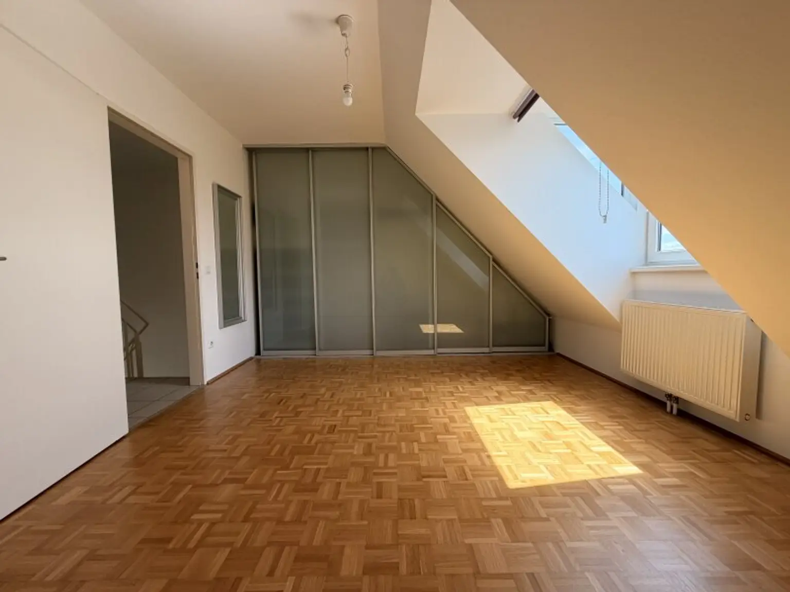 * Dachgeschoss, ca. 28,44m² gesamt: Vorraum + 1 Schlafzimmer mit ca. 16m² + 1 Badezimmer mit Dusche und WC mit RUND 7m² + 1 Abstellraum