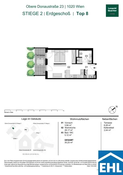 Eingebettet zwischen dem Donaukanal, dem grünen Augarten und dem pulsierenden 1. Wiener Gemeindebezirk vereint das LeopoldQuartier Natur, Urbanität und höchste Lebensqualität. Stephansdom, Kärntner Straße und die kulinarischen Hotspots des Servitenviertels sind fußläufig erreichbar.
