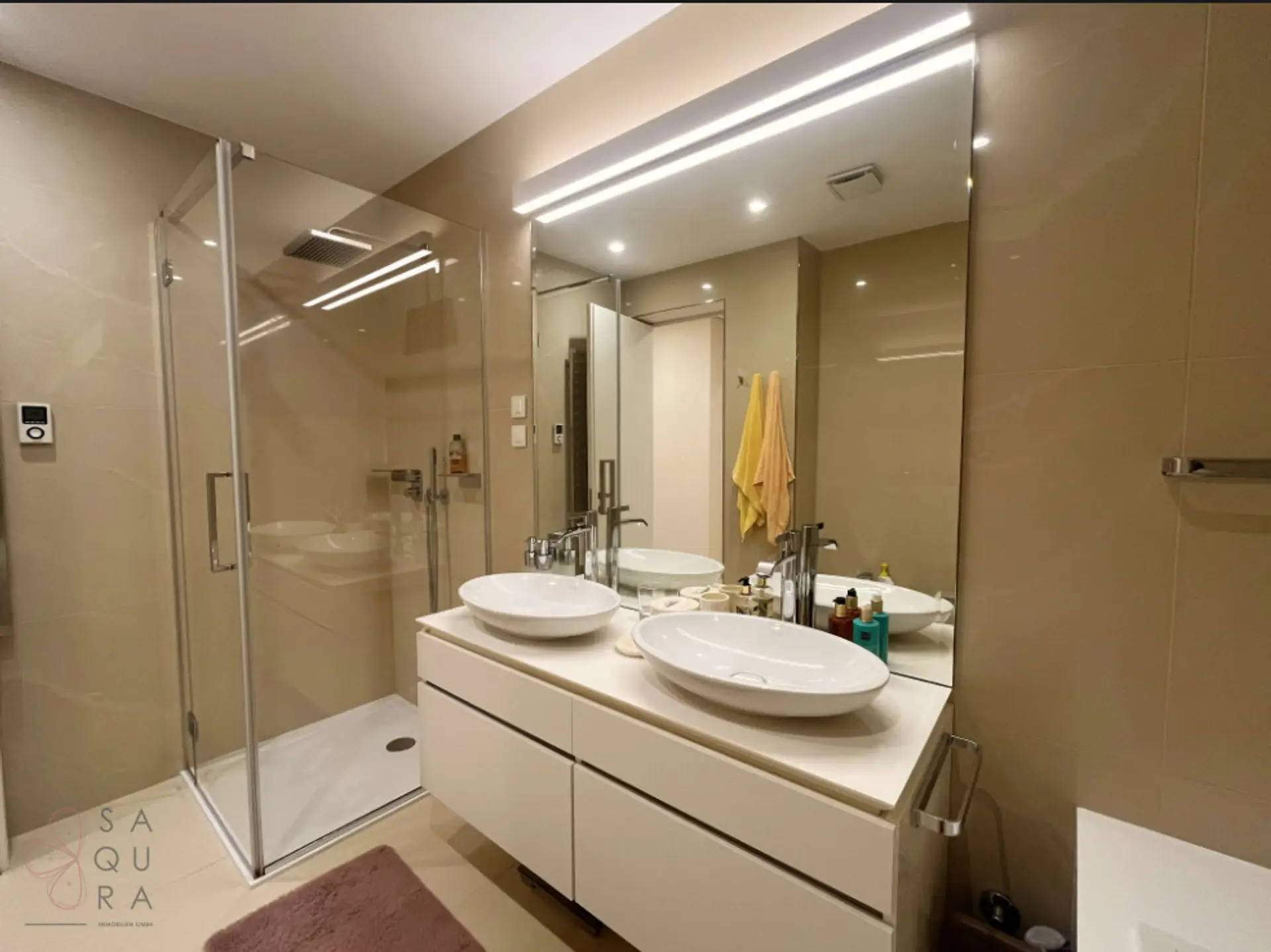 Elegant bathrooms featuring fixtures by Villeroy & Boch and Dornbracht.