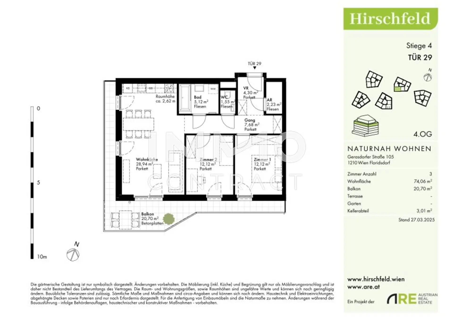 Am Rande eines weitläufigen Grünzugs, der sich bis zum Bisamberg erstreckt, entsteht im naturnahen Hirschfeld ein einzigartiges Wohnquartier: Auf drei Bauplätzen entwickelt sich ein modernes Architektur-Ensemble mit elf Gebäuden und rund 440 Wohnungen – ideal für alle, die Ruhe im Grünen mit urbaner Lebensqualität verbinden möchten.