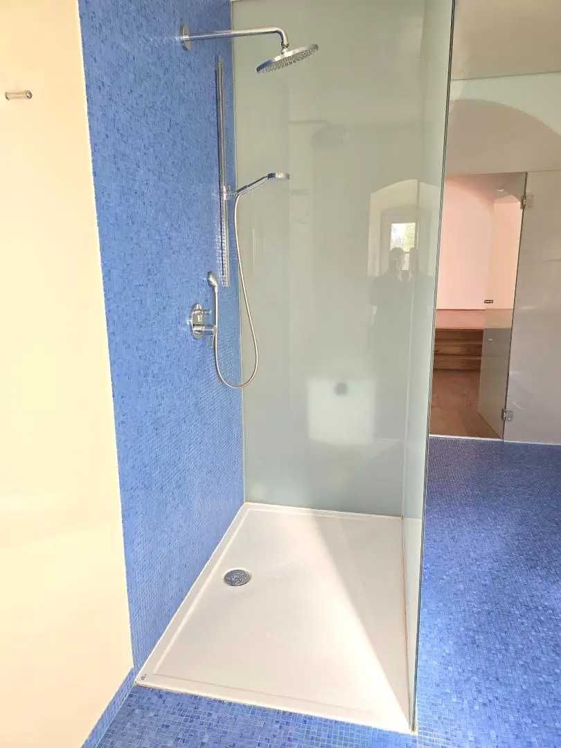 - Zwei luxuriöse Badezimmer mit aufwendig gearbeiteten Mosaiken, eleganten Badewannen und großzügigen Duschen