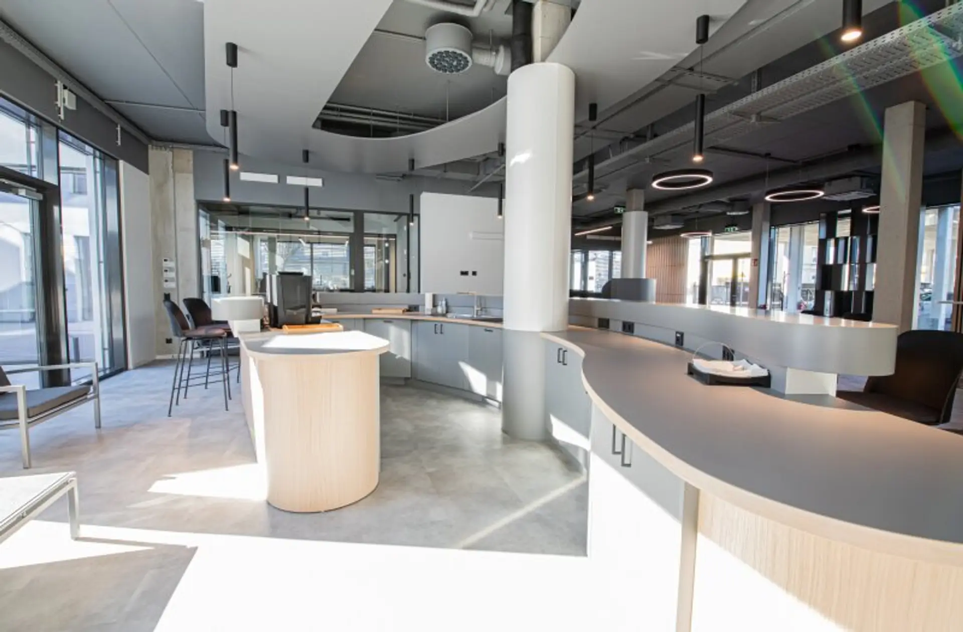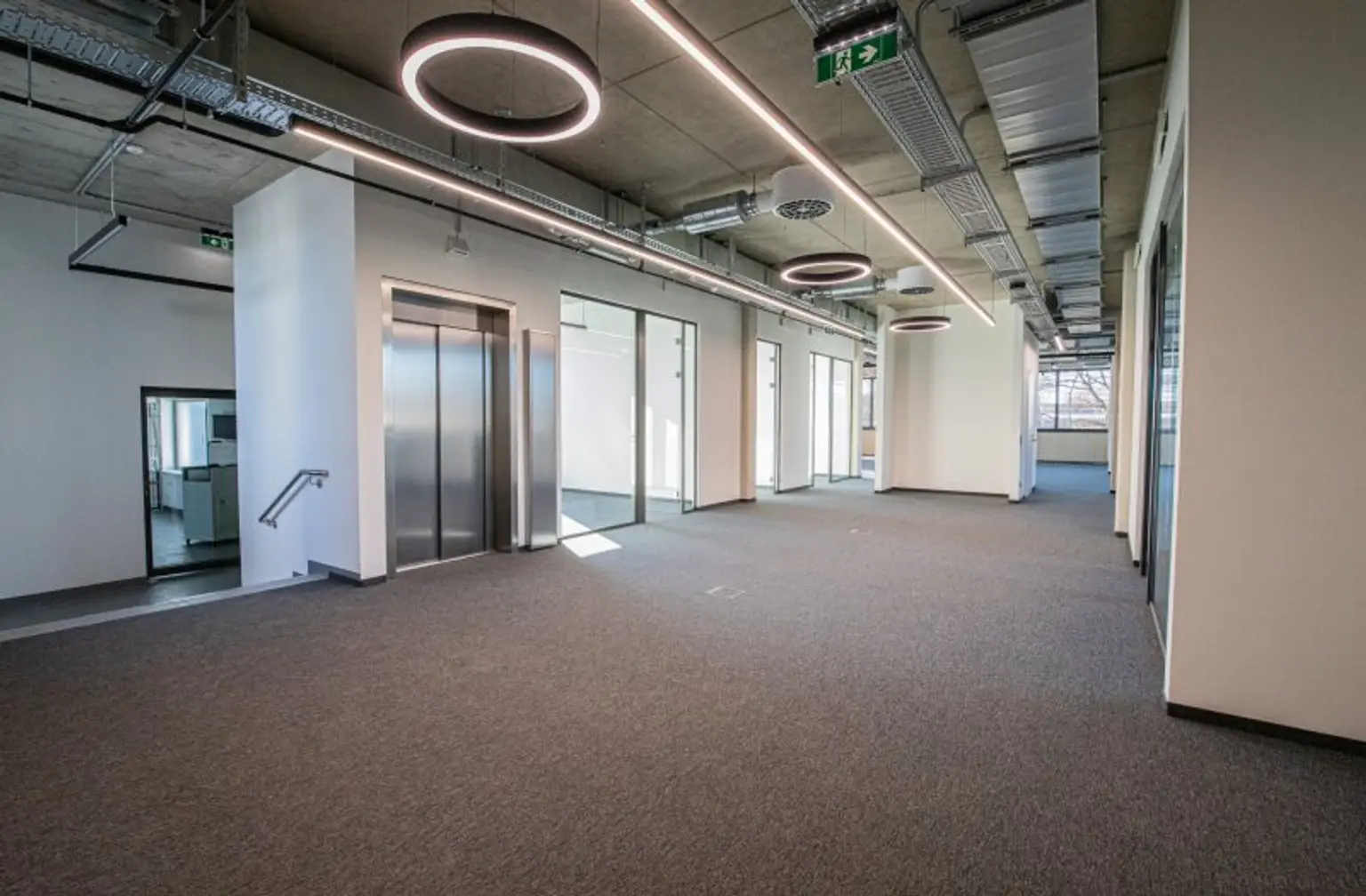 Ergänzt wird das Angebot durch großzügige Gemeinschaftsflächen – Lobby, Atrium und offene Pausenzonen, die Austausch und kreative Zusammenarbeit fördern