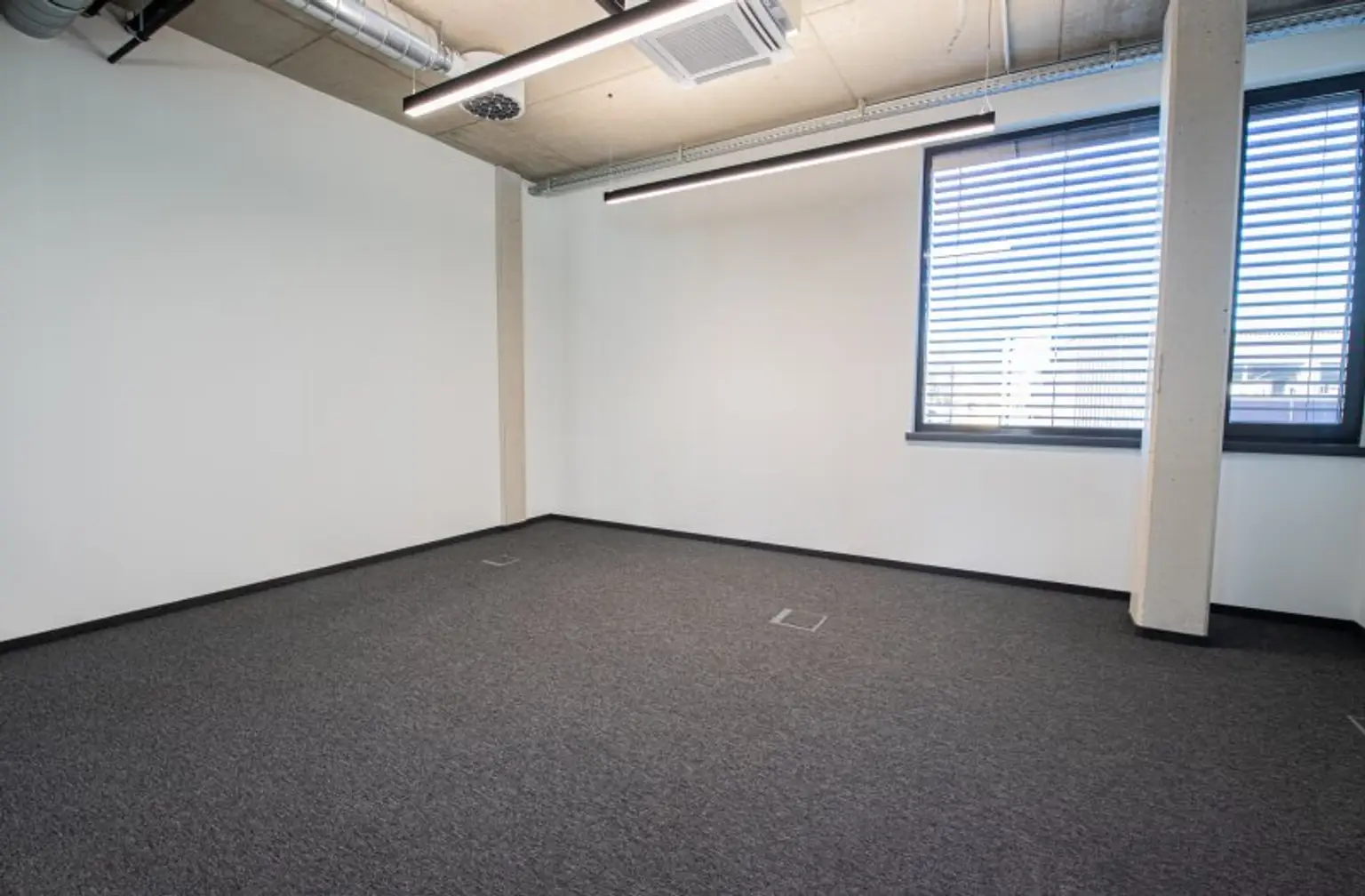 - Beheizung über Luftwärmepumpe (mittels Deckengeräten)