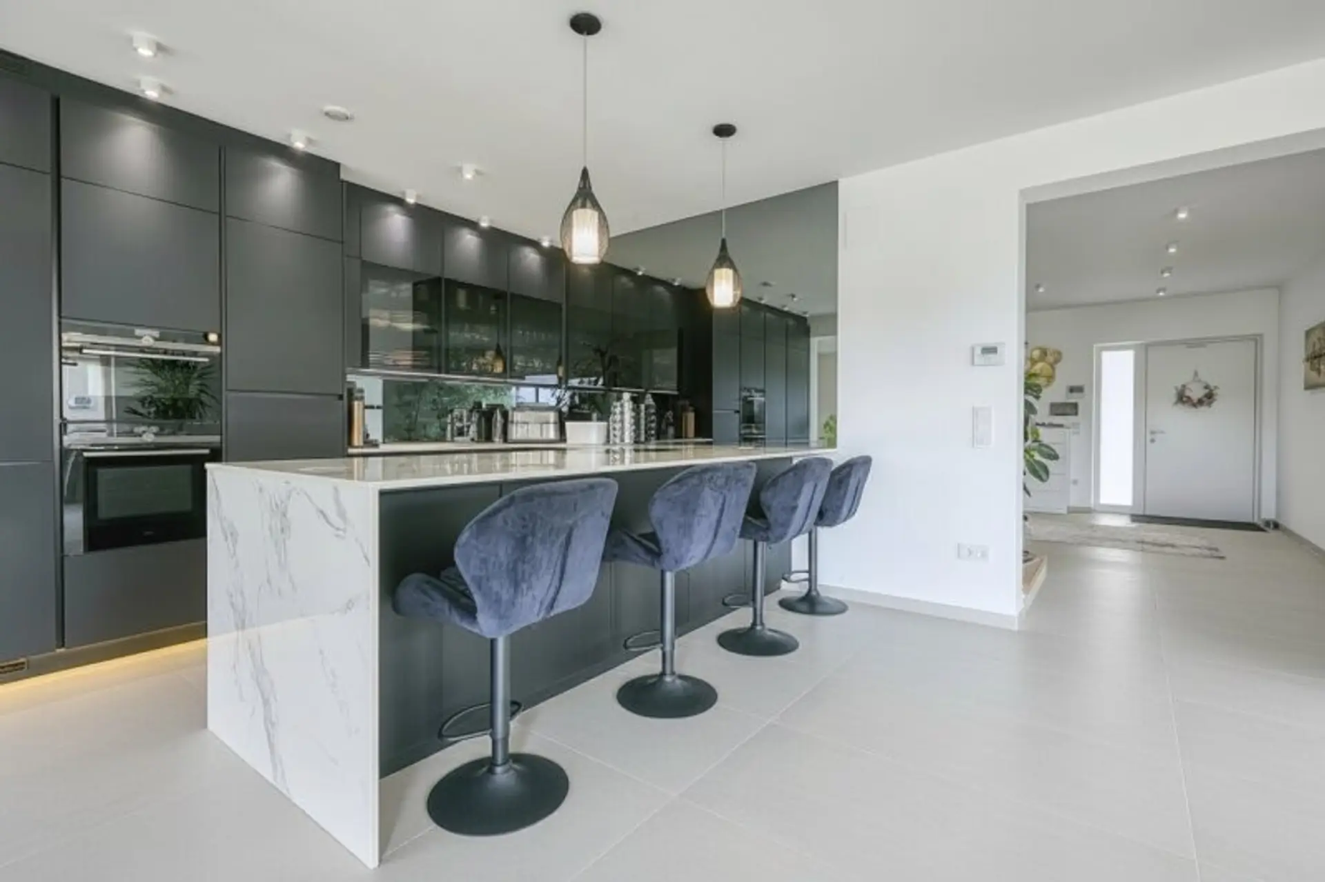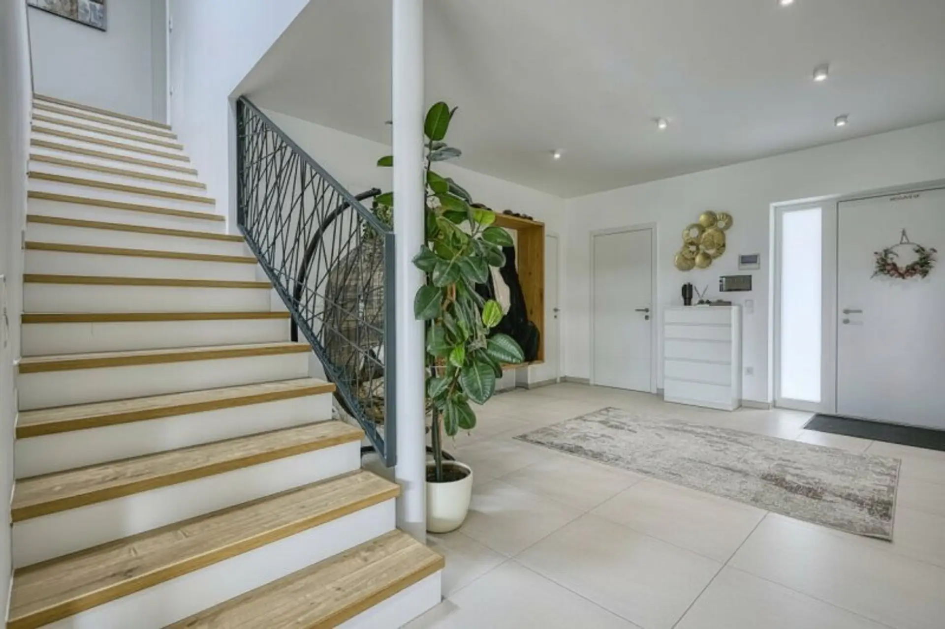 Schon beim Betreten des Hauses spürt man die Großzügigkeit und die durchdachte Planung. Ein einladender Eingangsbereich empfängt Sie und führt in eine Welt aus Licht, Raum und Eleganz.