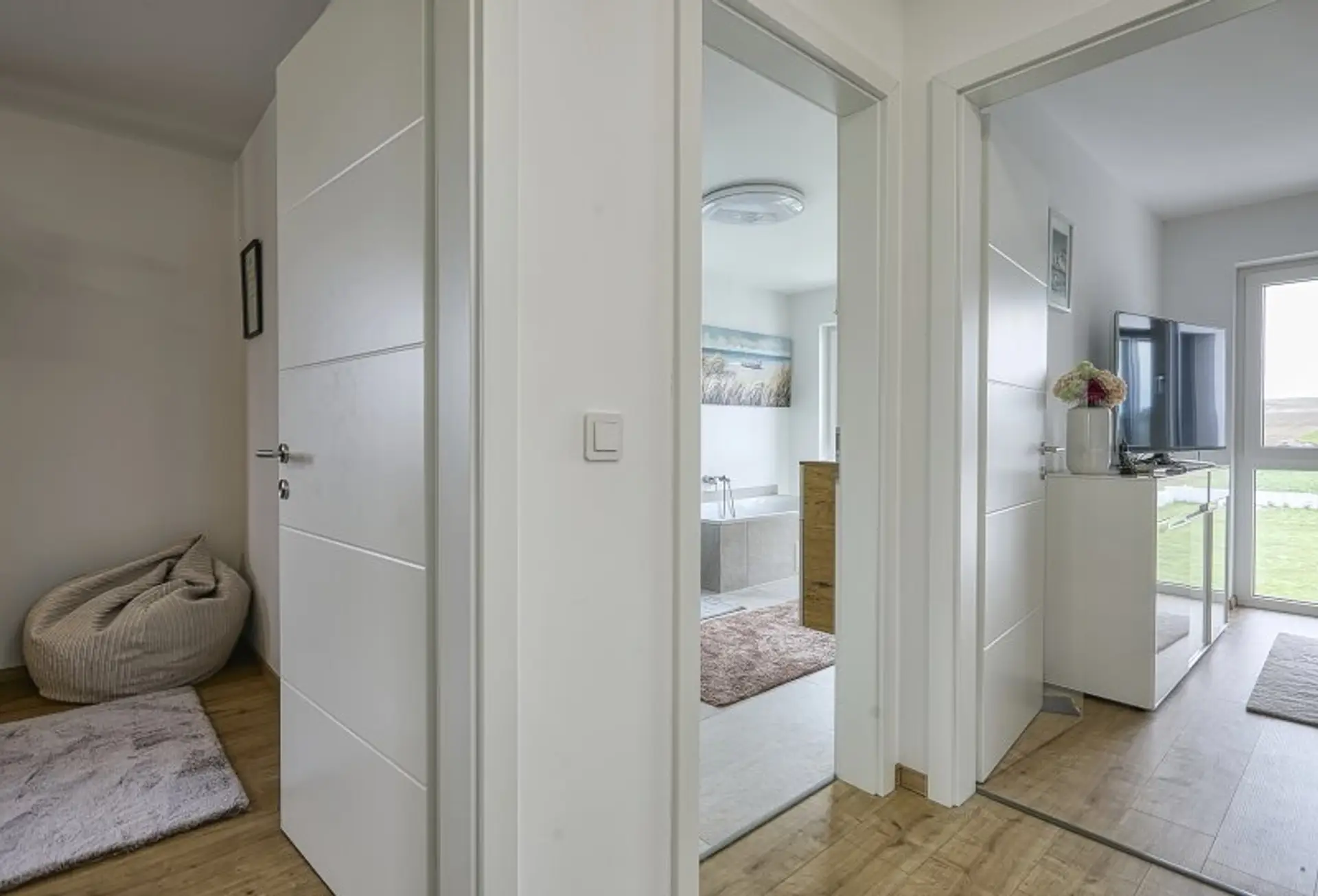 * edle Naturdesignböden im Obergeschoss für angenehmes und praktisches Wohnen