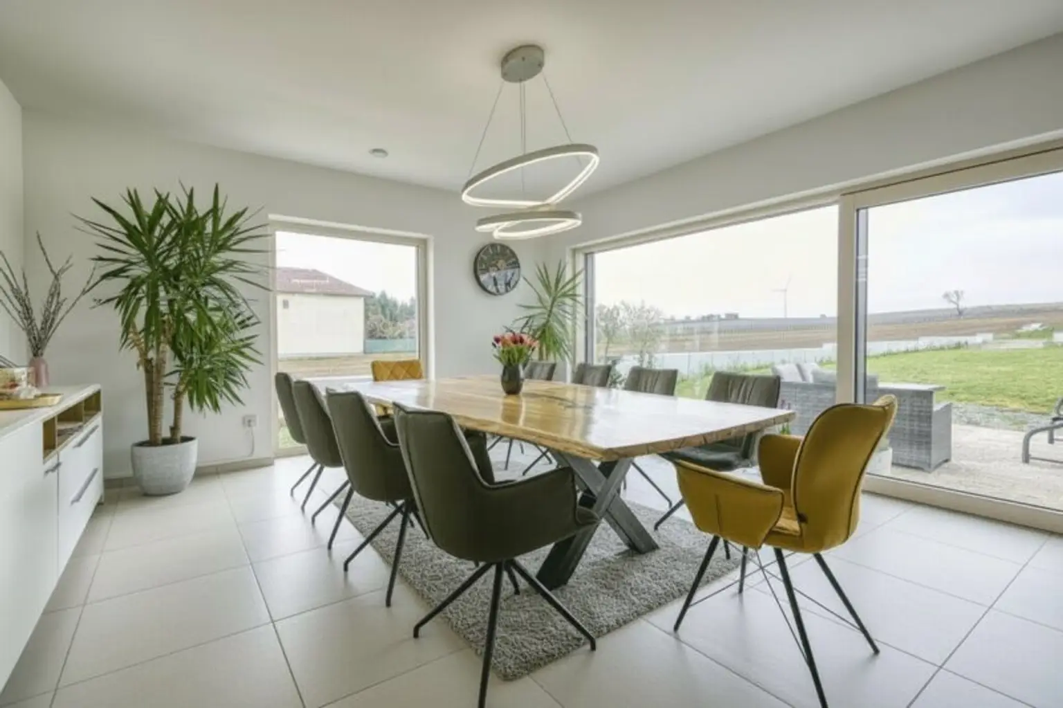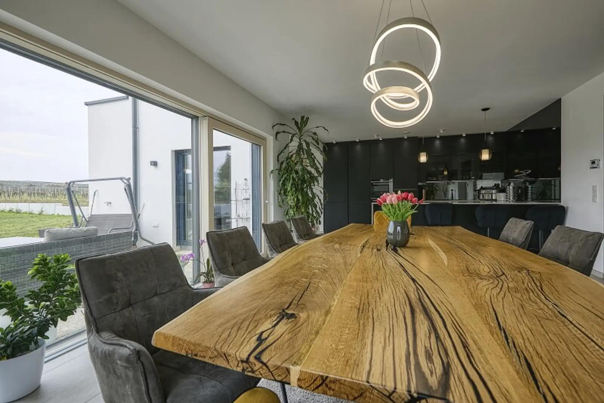 Großzügige Fensterfronten holen die Natur ins Innere und schaffen eine einzigartige Verbindung zwischen Wohnraum und Landschaft.