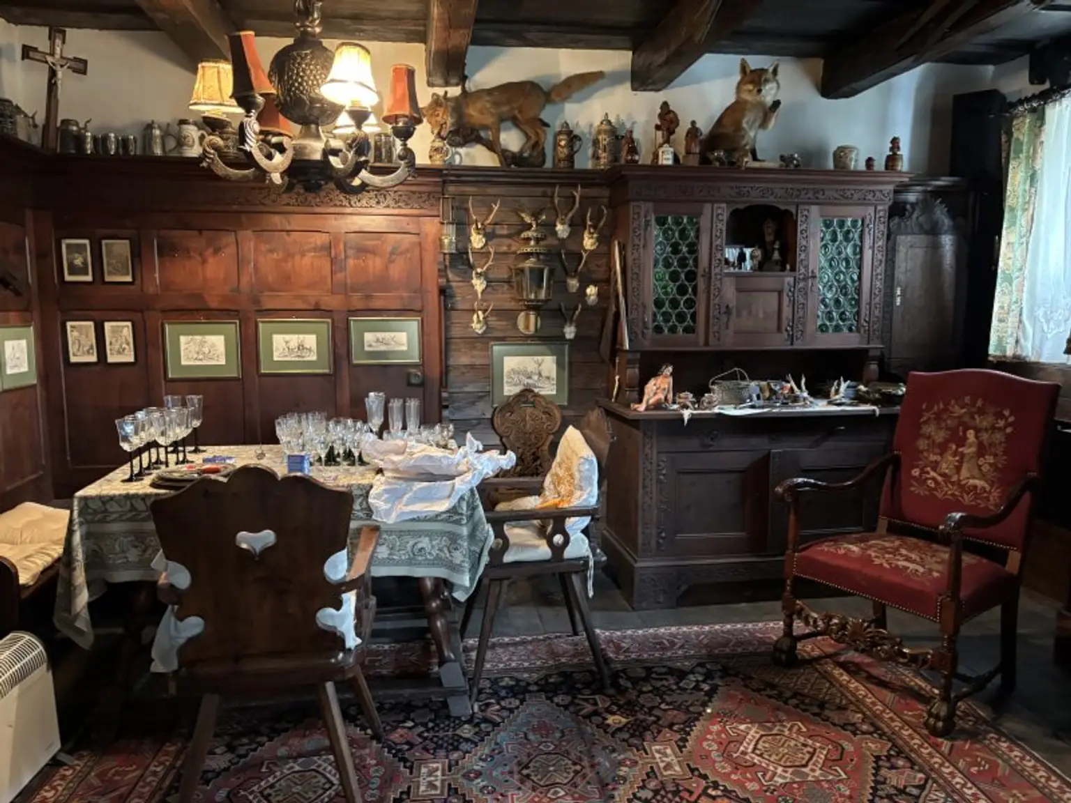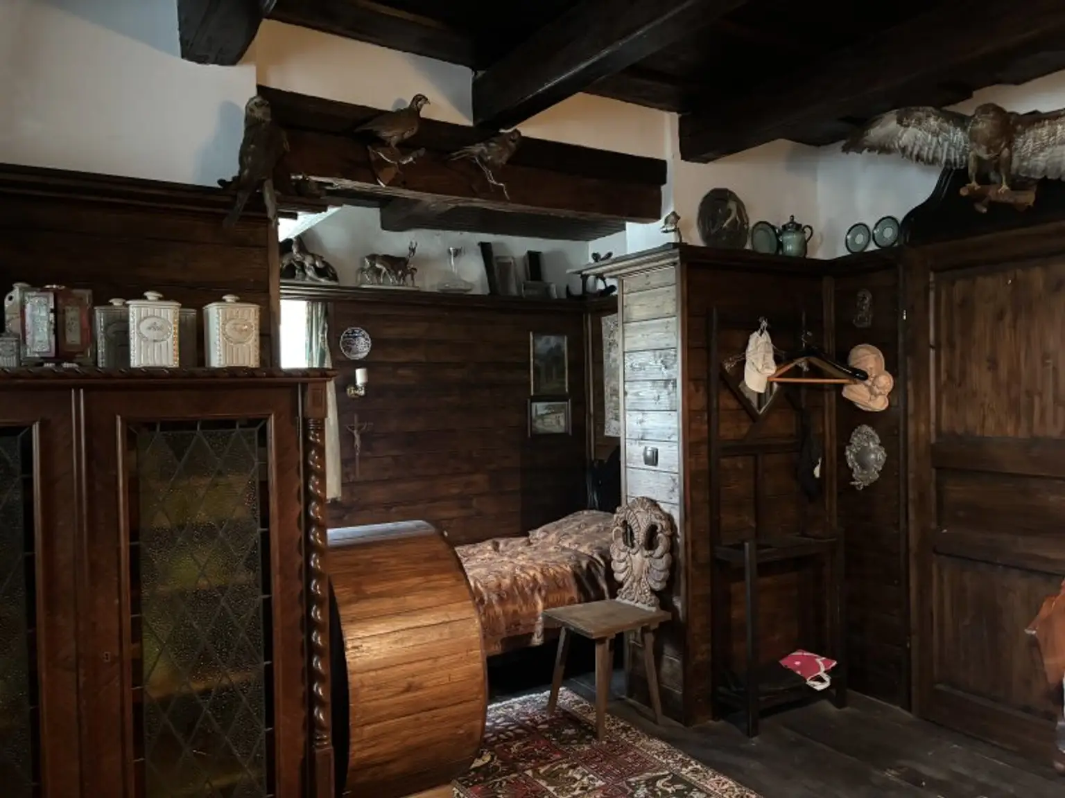 Ein altes Bauernhaus mit einer gemütlichen Bauernstube und einem Schlafeck, einem neuen Badezimmer, mit Dusche und Wc, im Vorraum ist eine Küchenzeile untergebracht und einem großen Partyraum, der bis zum Dach reicht.