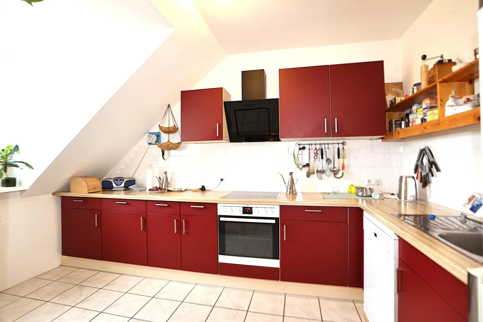 Die Wohnfläche von ca. 94 m² verteilt sich auf einen einladenden Vorraum mit Garderobe, eine helle Essdiele, eine voll ausgestattete Küche sowie ein freundliches Wohnzimmer mit genehmigtem Kaminofenanschluss und direktem Zugang auf die 7,5 m² große, ganzjährig sonnige Loggia, die zum Entspannen einlädt.