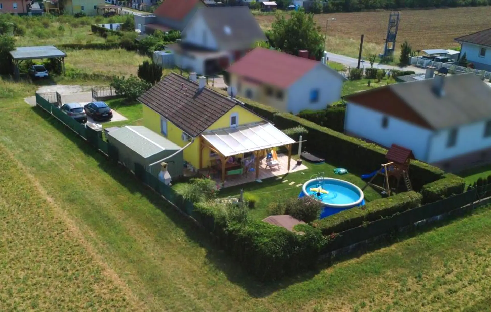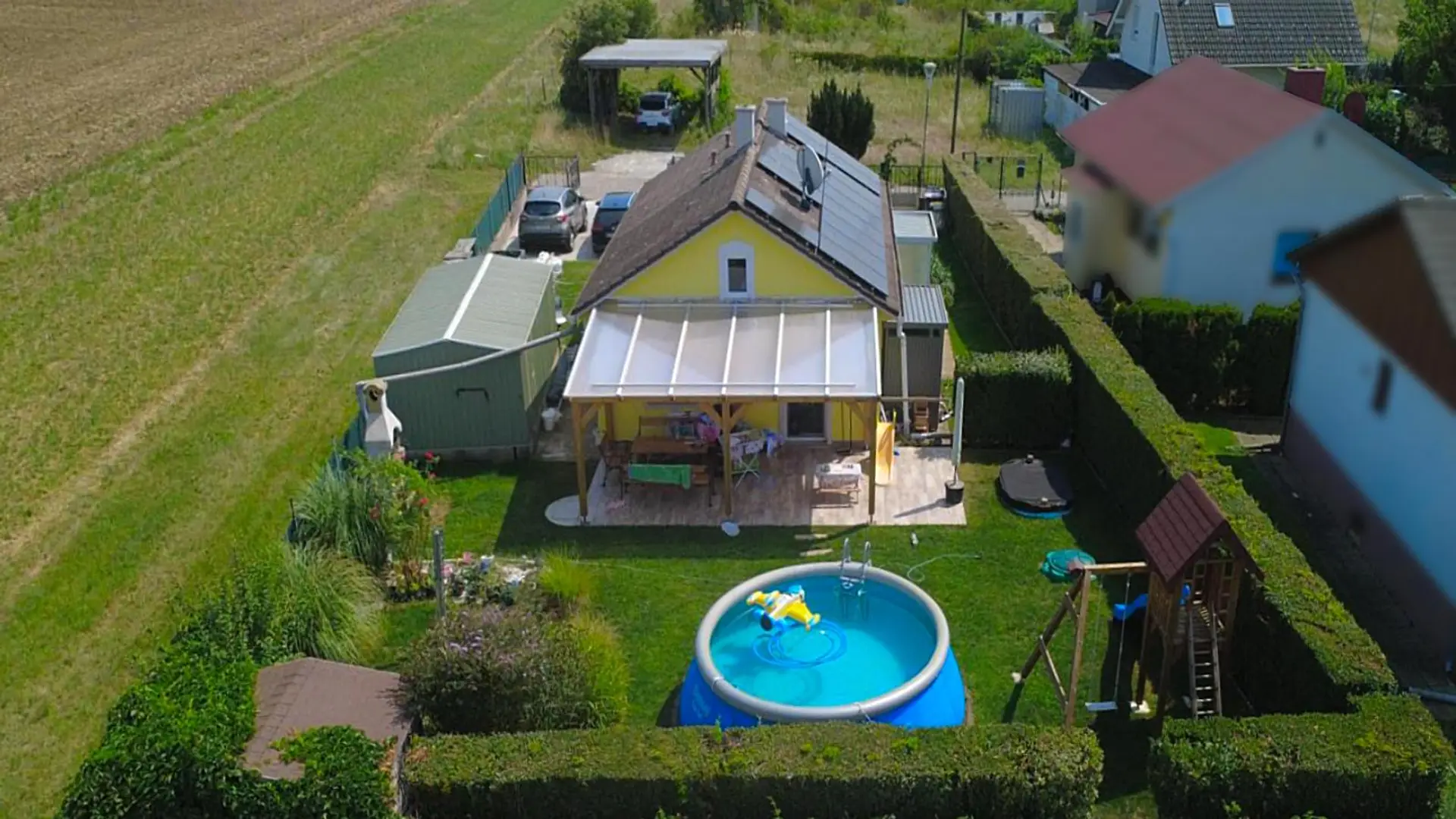 Das Haus liegt ruhig neben Feldern in Gehentfernung zu