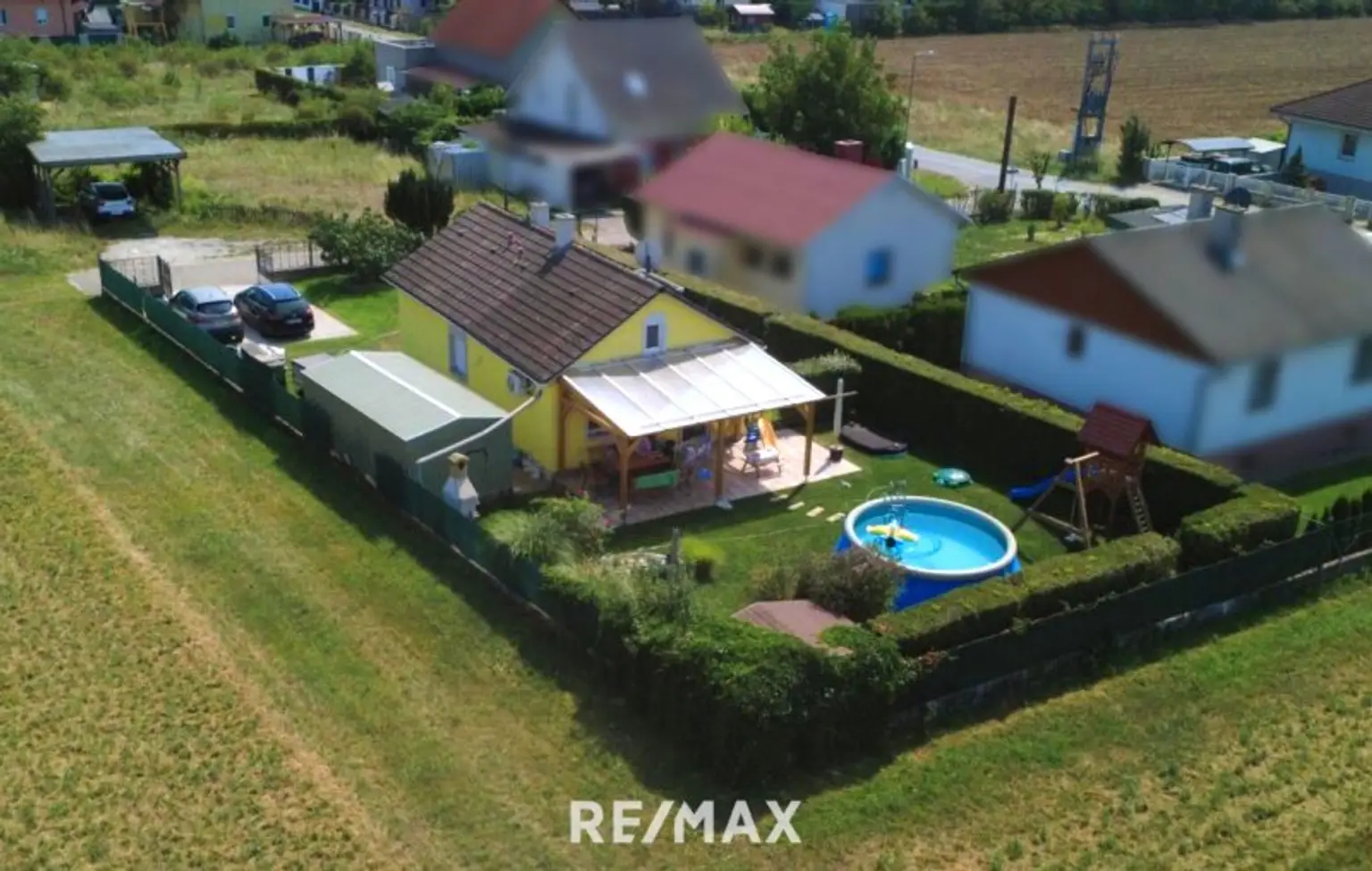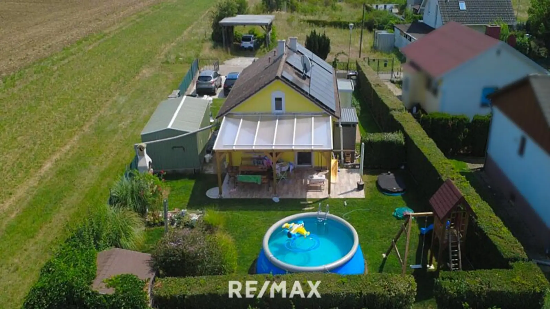 Das Haus liegt ruhig neben Feldern in Gehentfernung zu Kindergärten, Volksschule und SPAR Supermarkt