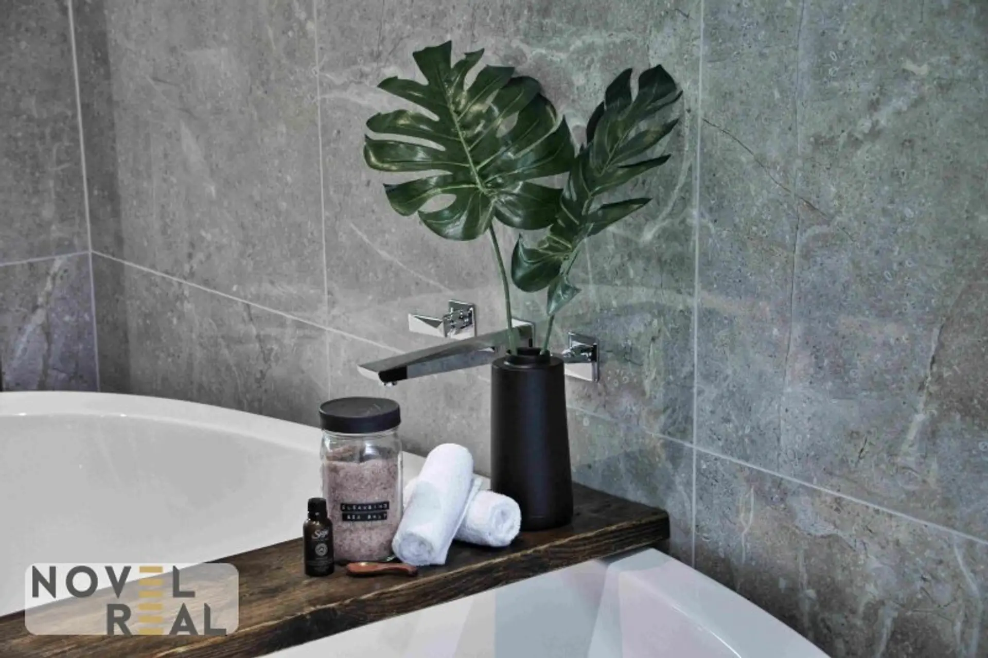 * elegantes Badezimmer mit Walk-in-Dusche und WC