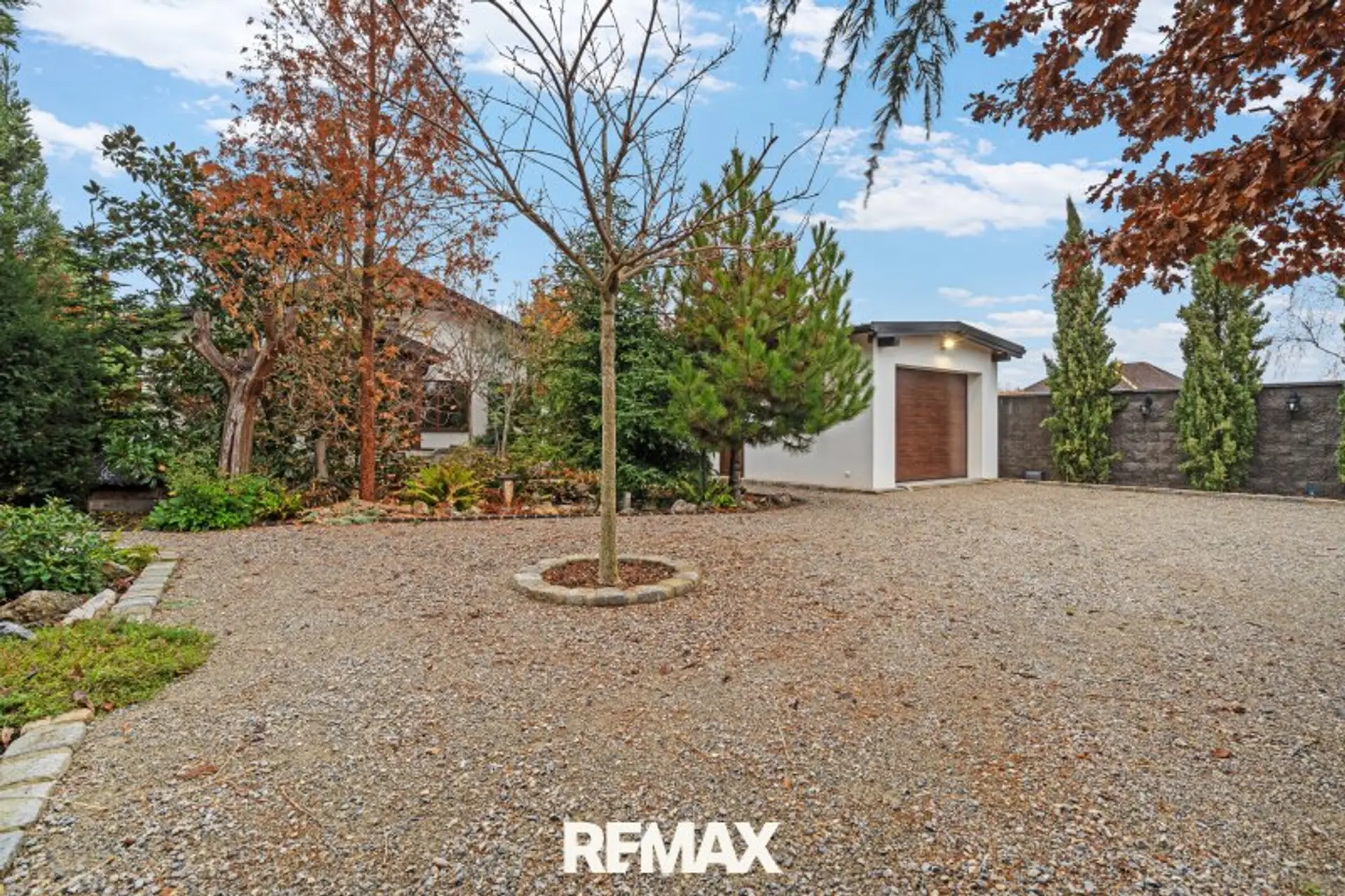 * Garage mit elektrischem Tor + 4 Abstellplätze im Eingangsbereich des Gartens