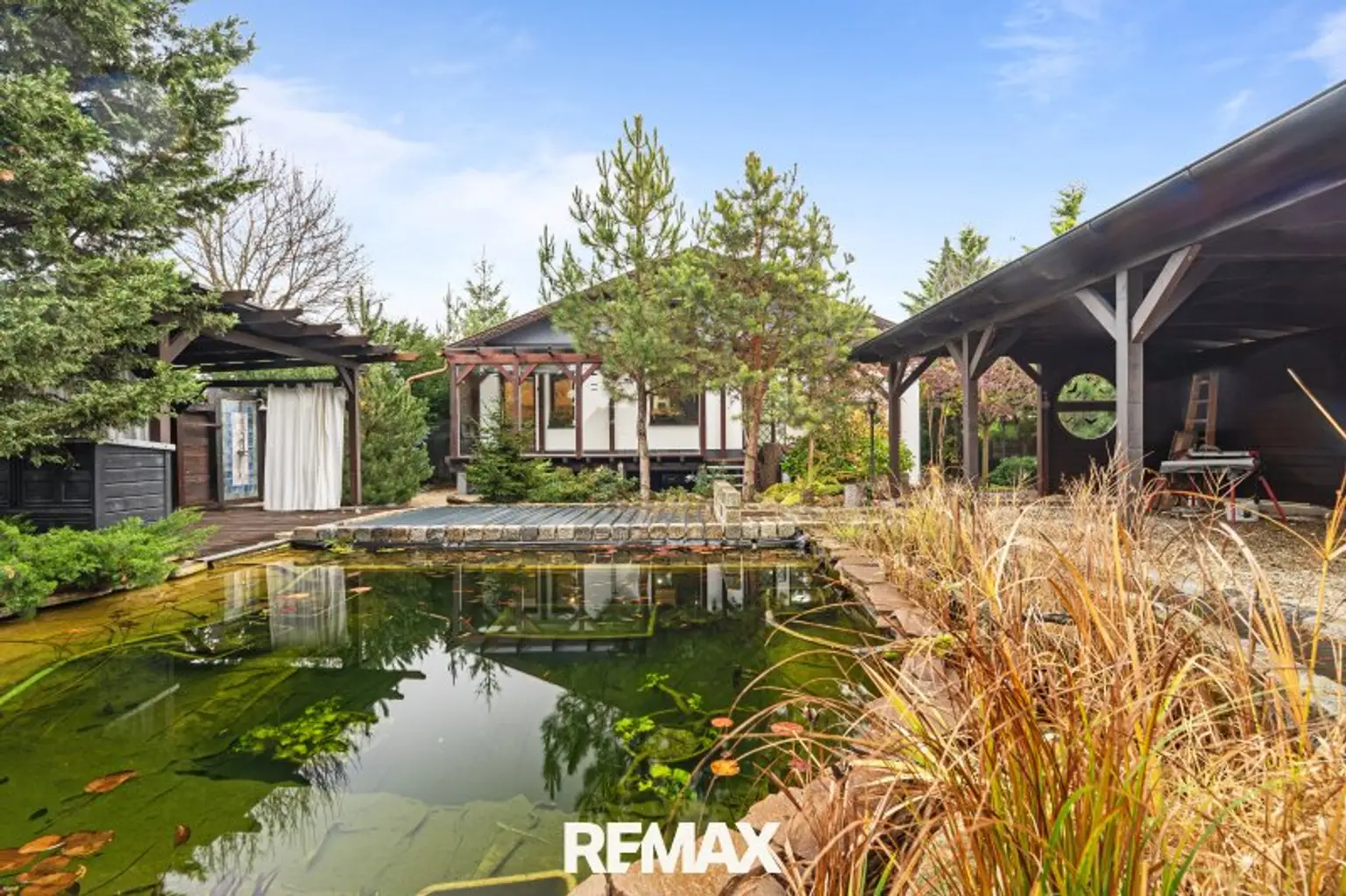 * Paradiesische Außenanlage: Einladender Poolbereich samt angenehm ruhigem Teich, umrahmt von grüner Idylle – mit viel Annehmlichkeiten, perfekt zum entspannen und genießen im Freien