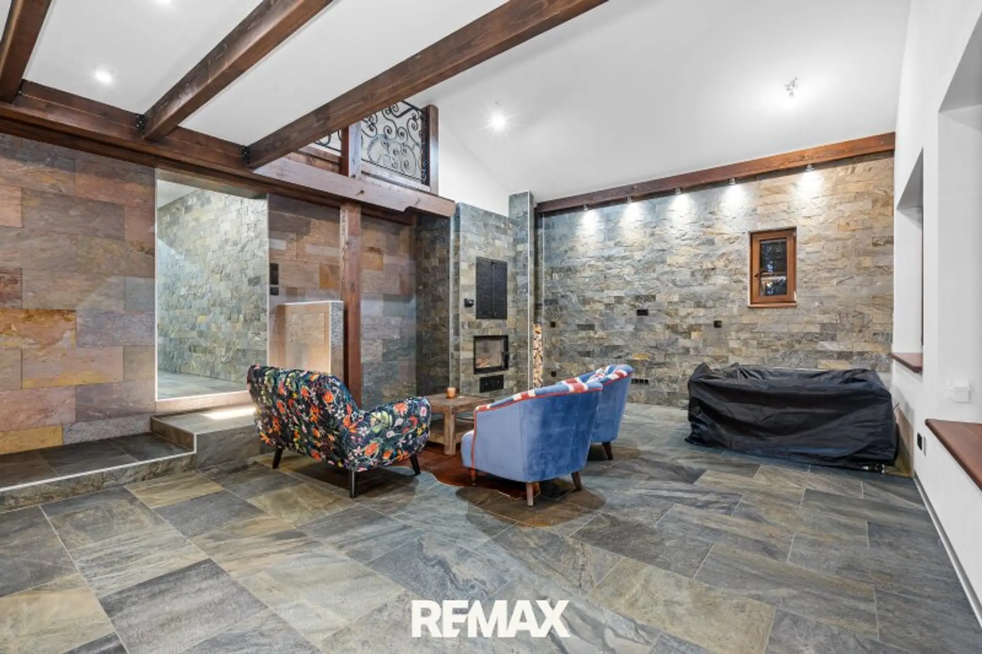 * Großzügiges Wohnzimmer mit offener Küche, Kamin mit wasserführendem Einsatz (Aquatic VH80), Jaccuzi und Zugang zur Terrasse