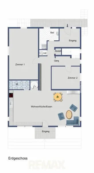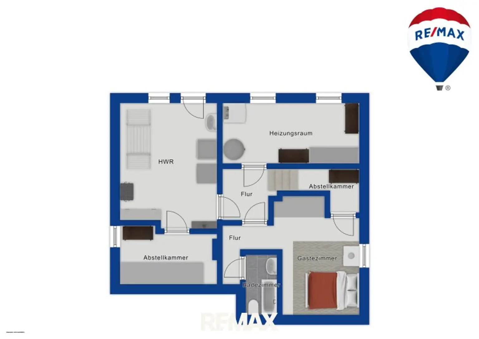 * Separates Gäste-WC, Abstellräume, Technik-/Heizraum