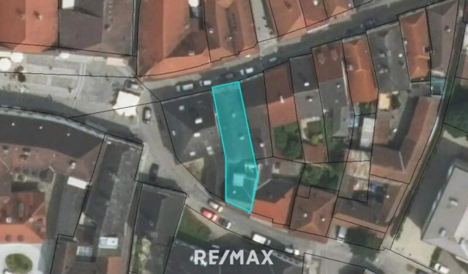 * Innenstadtensemble, zwei getrennte Gebäude verbunden durch einen Innenhof