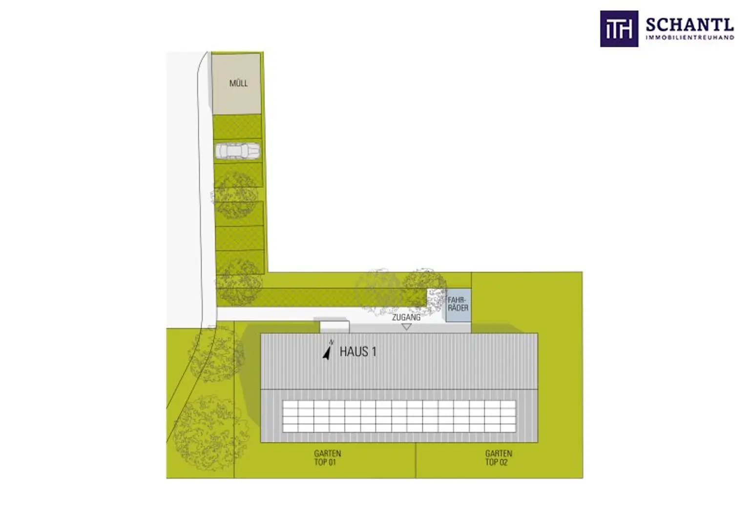 In diesem Wohnbauprojekt erwarten Sie eine moderne Bauweise mit hochwertiger Ausstattungsqualität sowie großzügige Freiflächen und begrünte Dachanlagen.