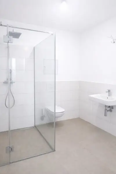* Badezimmer mit verglaster Dusche