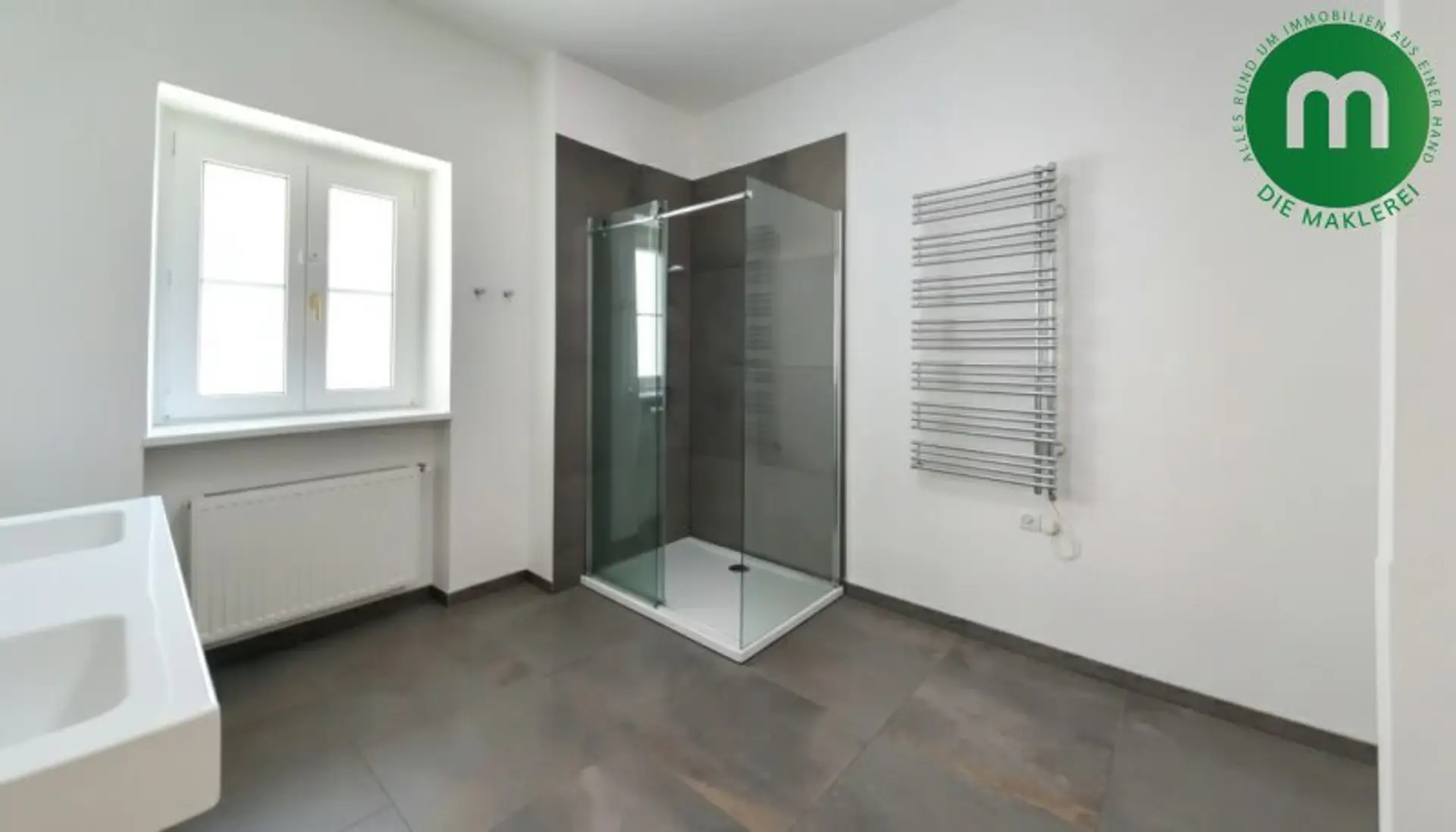 Tageslichtbad mit Dusche, separates WC mit Handwaschbecken