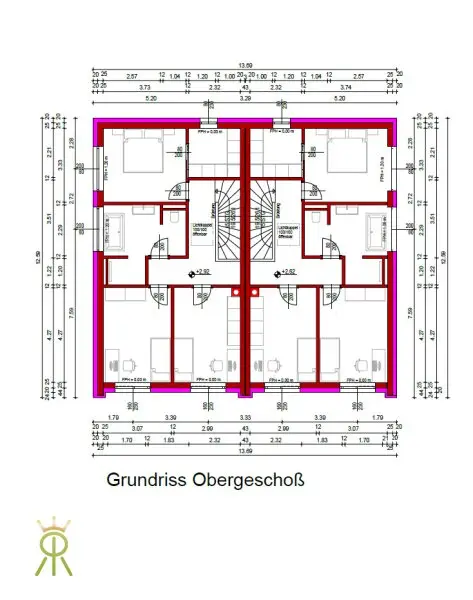 - Das Projekt umfasst insgesamt 18 Wohneinheiten, die auf 9 Doppelhäuser verteilt sind.