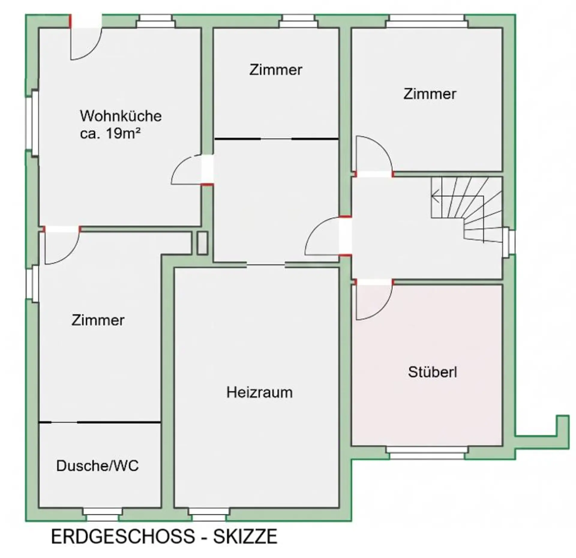 Im Erdgeschoß verbirgt sich eine vollwertige Einliegerwohnung, die sich perfekt für Familienangehörige, Gäste oder als ruhiger Arbeitsbereich eignet. Diese Ebene ist mit einer Wohnküche, zwei weiteren Zimmern sowie Sanitäranlagen ausgestattet. Ein gemütliches Stüberl lädt zum Verweilen ein. Ebenfalls im Erdgeschoß untergebracht ist der geräumige Heizraum.