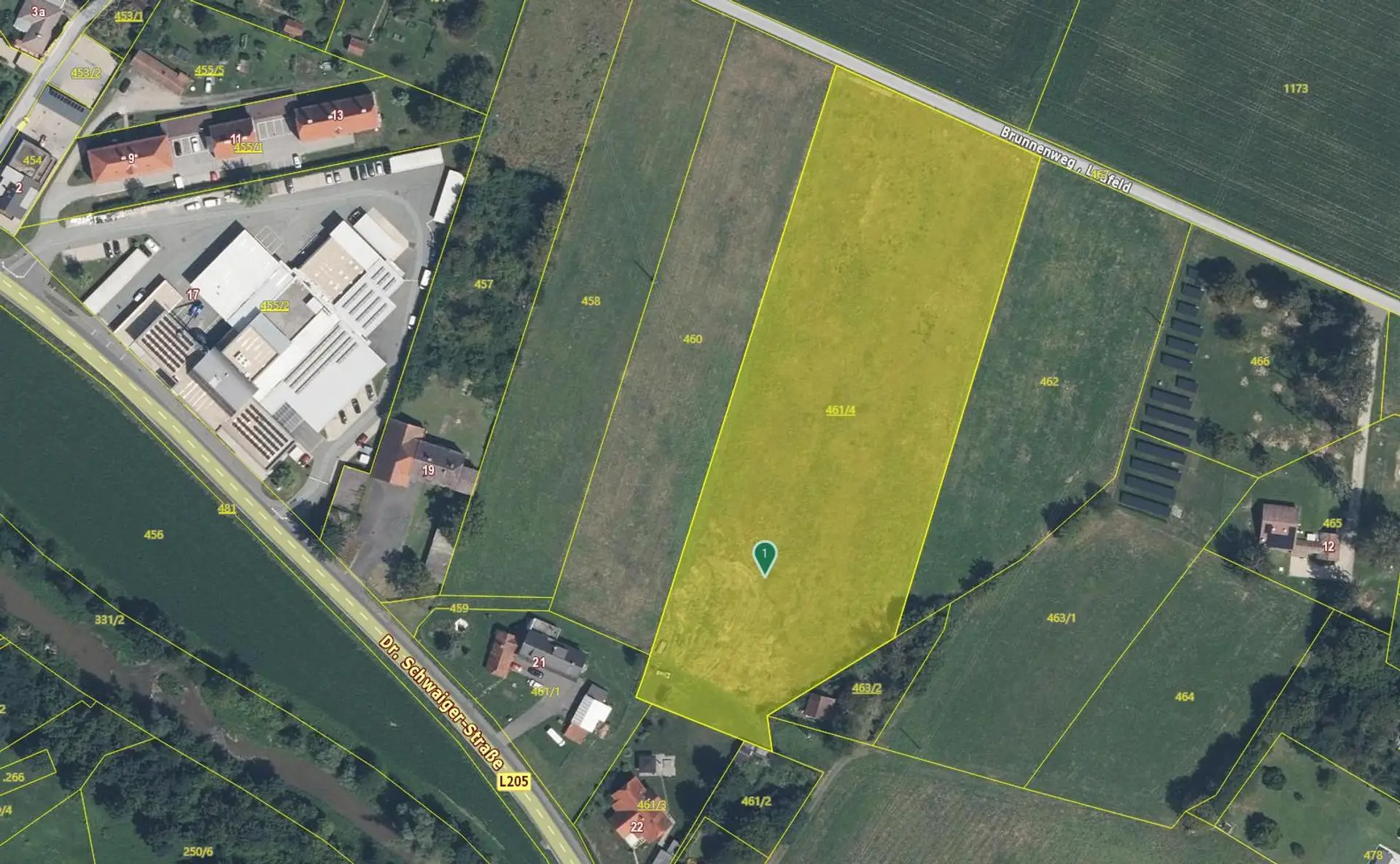 Hinter dem Wohn- und Geschäftshaus befindet sich ein Grundstück in attraktiver Lage nahe dem Landeskrankenhaus Bad Radkersburg und verbindet ruhiges, naturnahes Wohnen mit guter Infrastruktur. Dieses Grundstück bietet eine Nutzfläche von 12.500 m², davon sind 829 m² als Bauland mit der Widmung A-WA (Allgemeines Wohngebiet) ausgewiesen. Bebauungsdichte: Minimum: 0,2 Maximum: 0,6