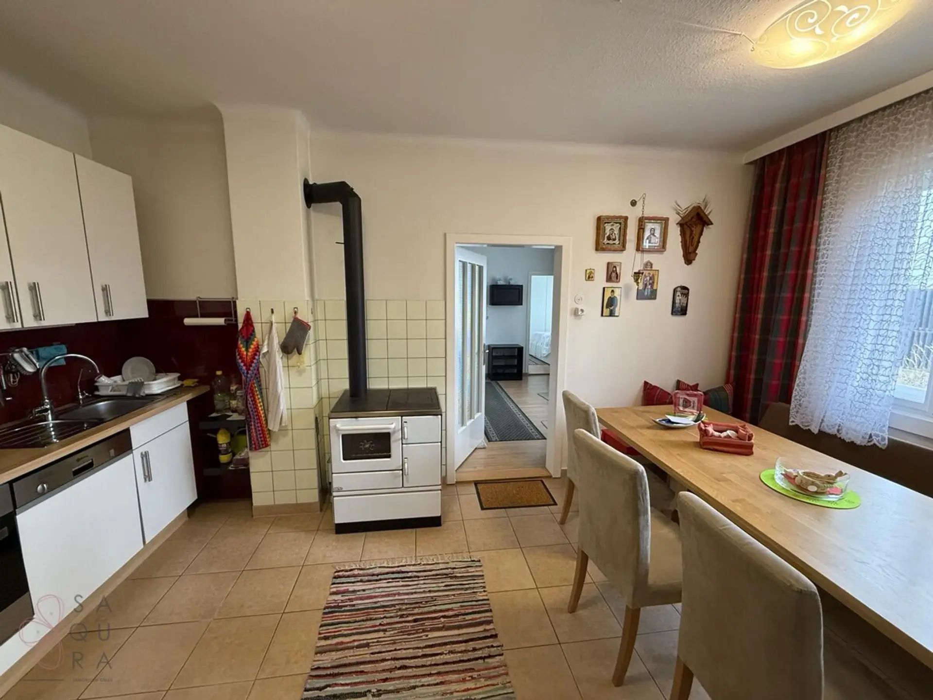 •Zusätzlich Ofen mit festen Brennstoffen in der Küche