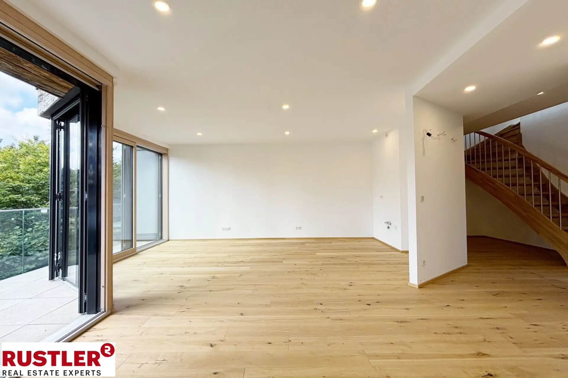 Bereits im unteren Geschoss erwartet Sie eine helle, einladende Wohnküche mit direktem Ausgang ins Freie. Die angeschlossene Terrasse bzw. Loggia, mit auf Drainagekies verlegte Feinsteinzeug Platten, erweitert den Wohnbereich und schafft eine fließende Verbindung von Innen und Außen. Zudem stehen Ihnen zwei Zimmer, ein modernes Badezimmer mit Dusche, WC und Aufsatzschalen auf einen Vollholz Waschtisch sowie ein Abstellraum zur Verfügung - ideal für das tägliche Familienleben.