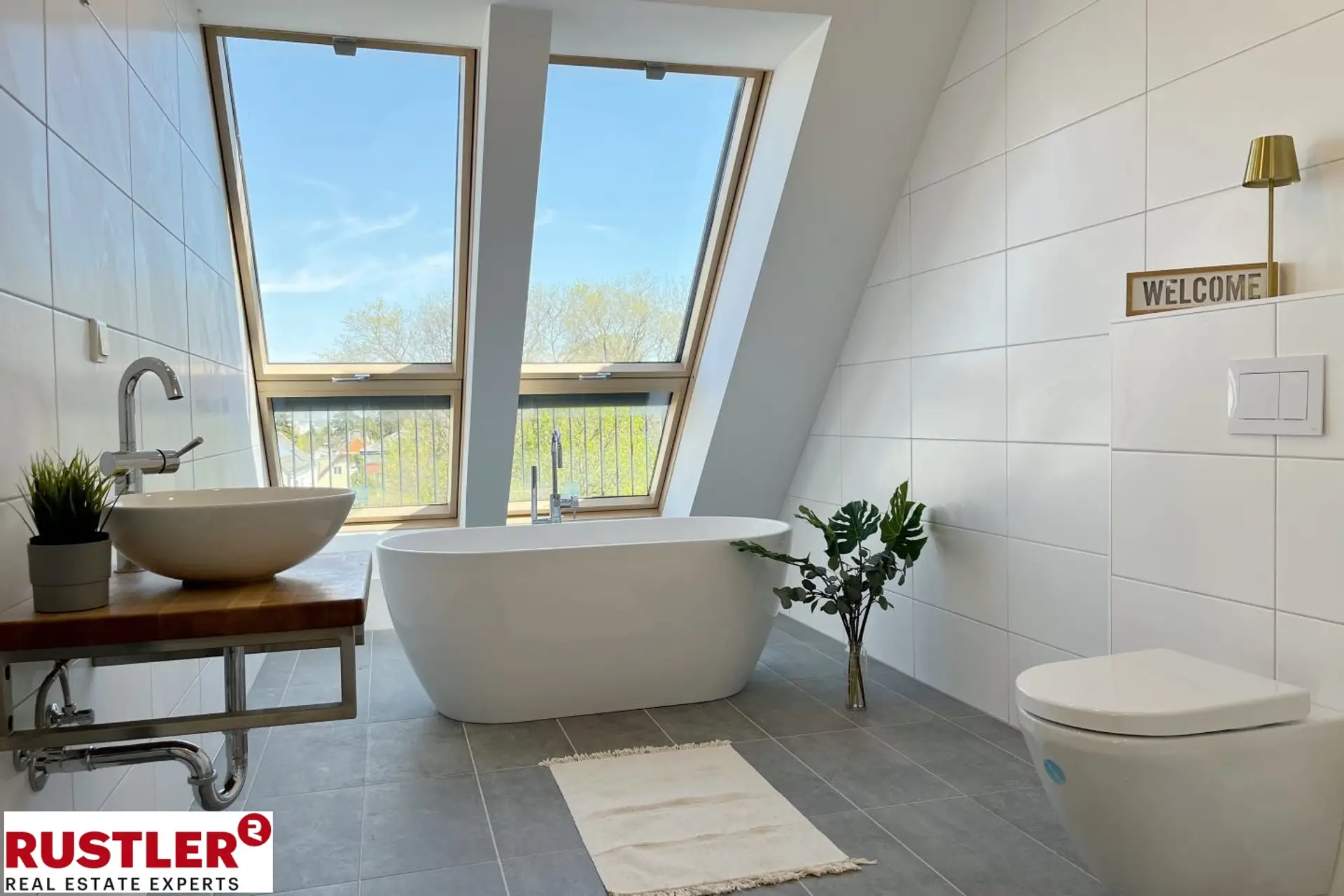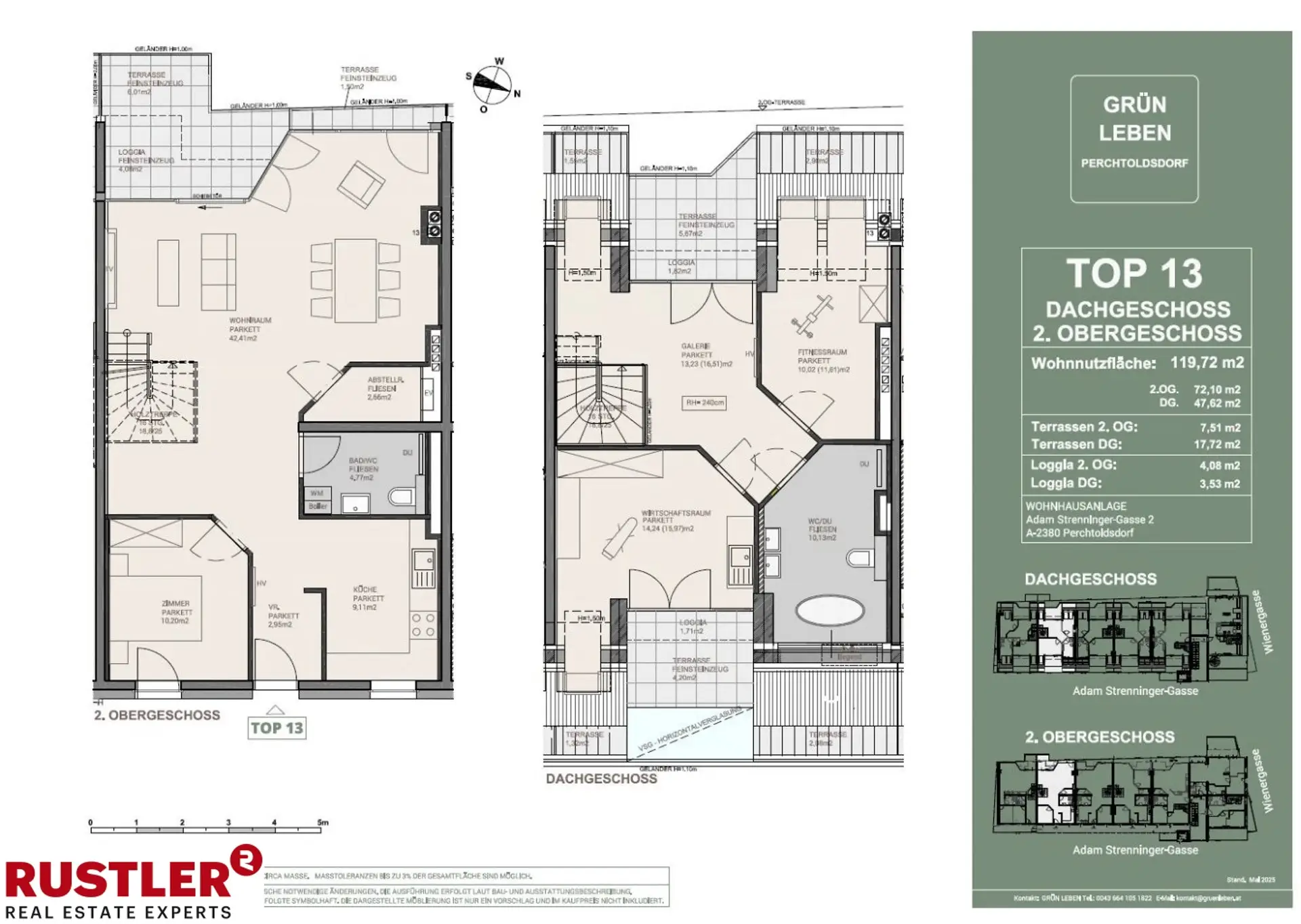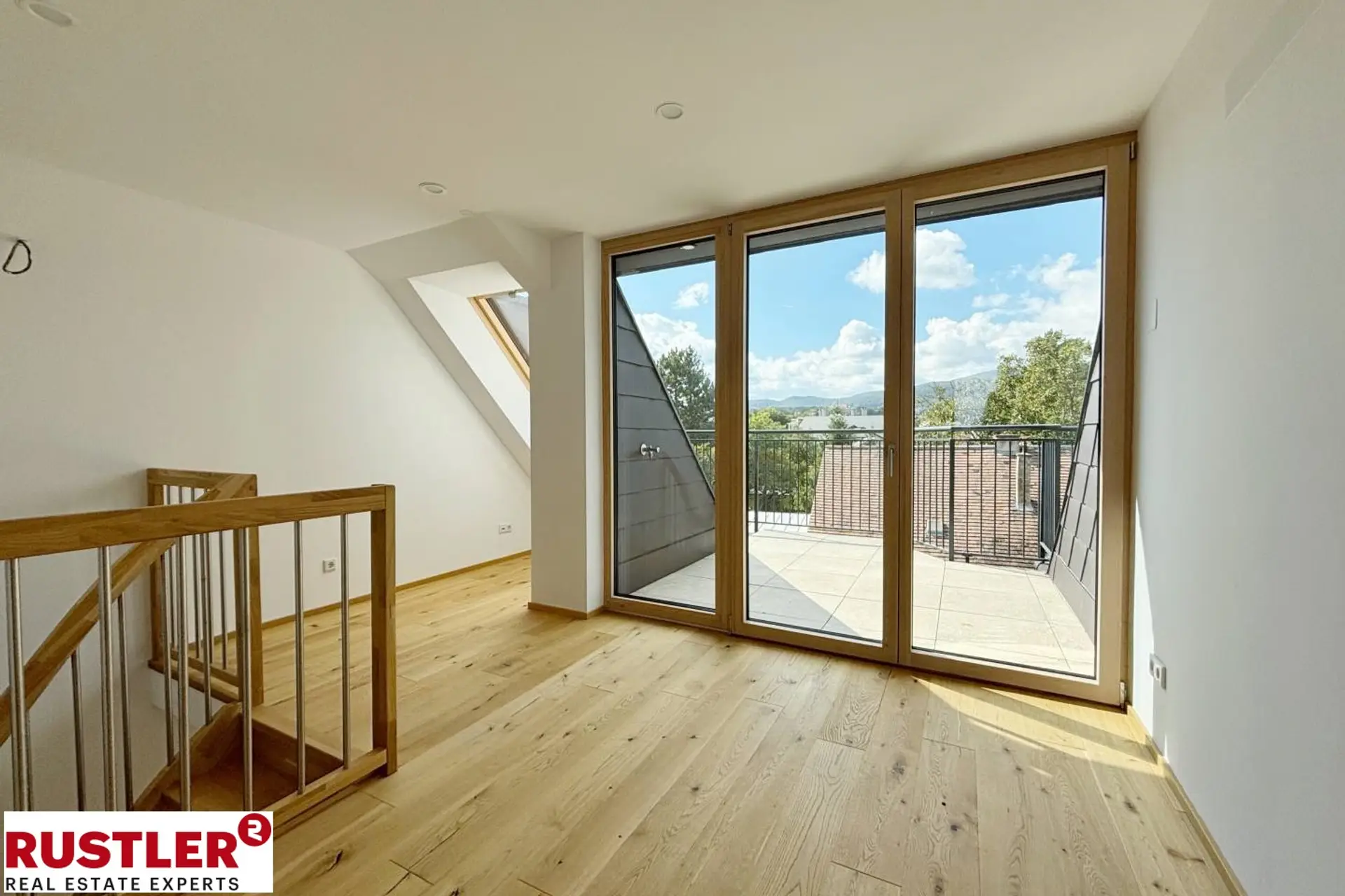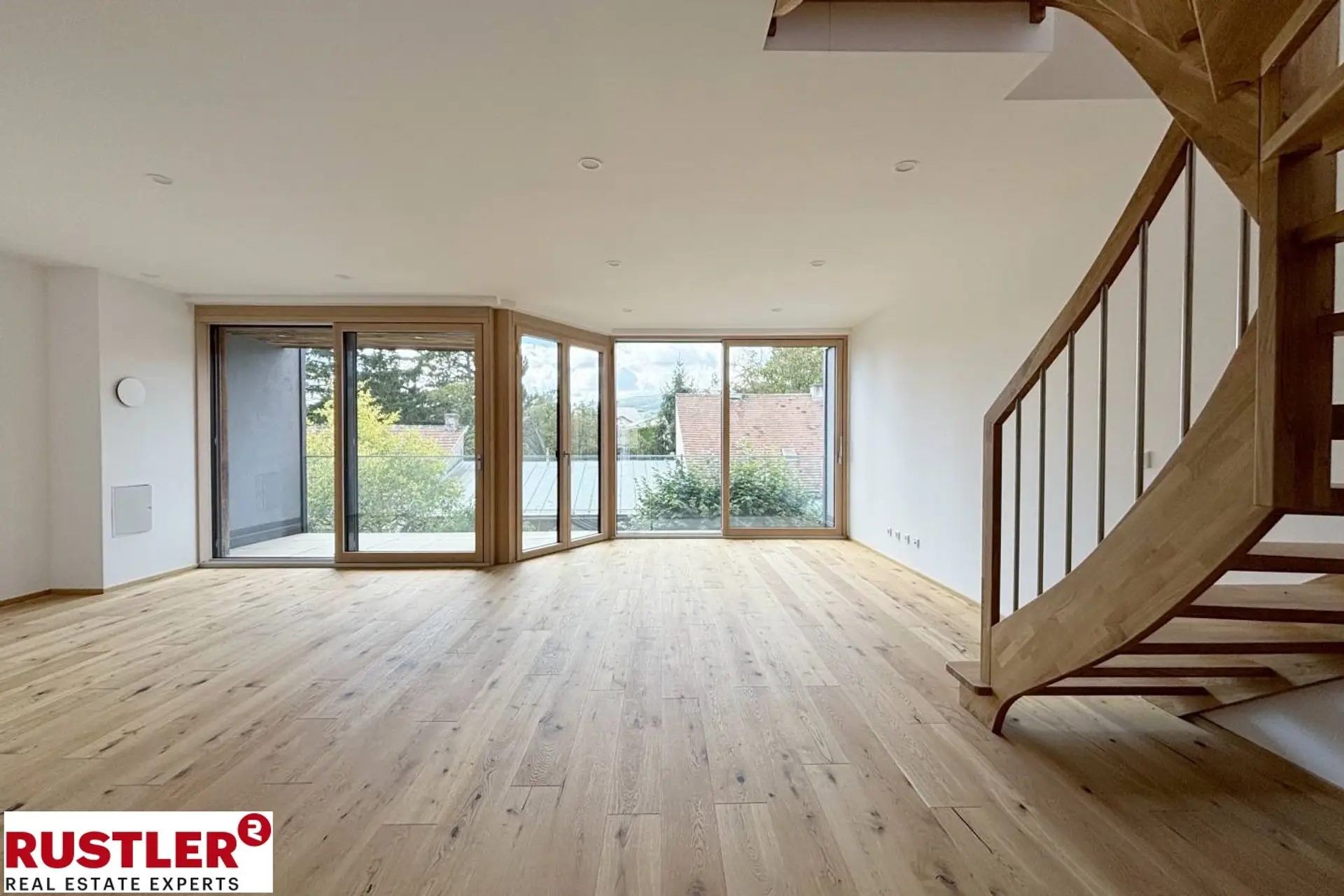 Diese außergewöhnliche 2-geschossige Wohnung bietet ca. 120 m² Wohnfläche und kombiniert Großzügigkeit mit durchdachtem Raumkonzept. Ost-West-Ausrichtung sorgt für optimale Lichtverhältnisse, Terrassen und Loggien verbinden Innen- und Außenbereich harmonisch.