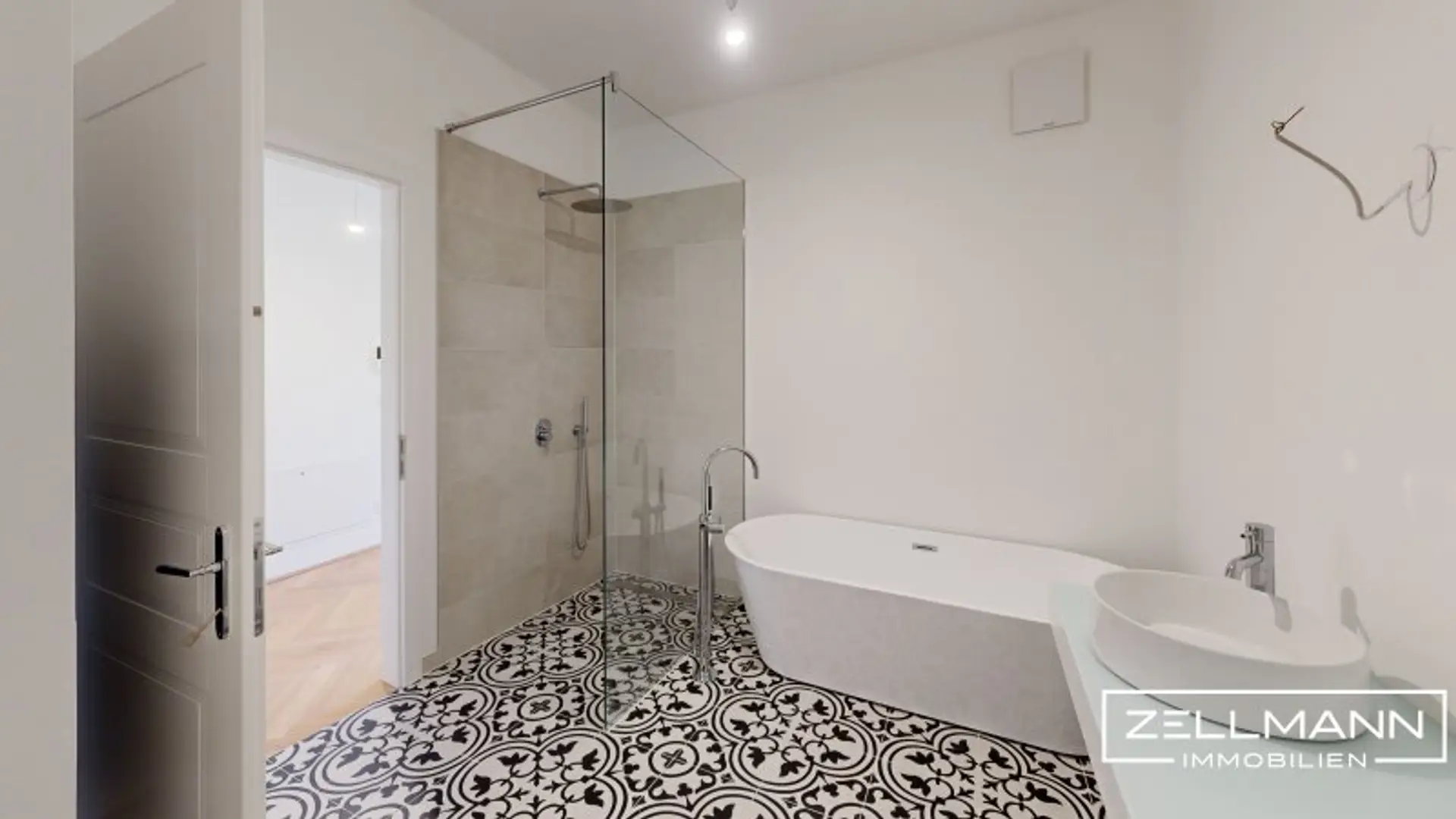 Besonderes Augenmerk wurde auf eine hochwertige und langlebige Ausstattung gelegt, die sowohl optisch als auch funktional höchsten Ansprüchen gerecht wird. In den Wohnräumen sorgt ein edler Eichenparkettboden in geölter Ausführung für eine warme, natürliche Atmosphäre, während die Bäder und WCs mit stilvollen, zeitlos gestalteten Fliesen ausgestattet sind.