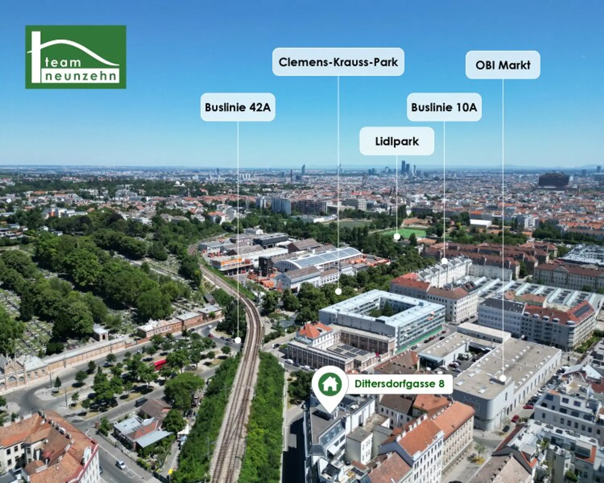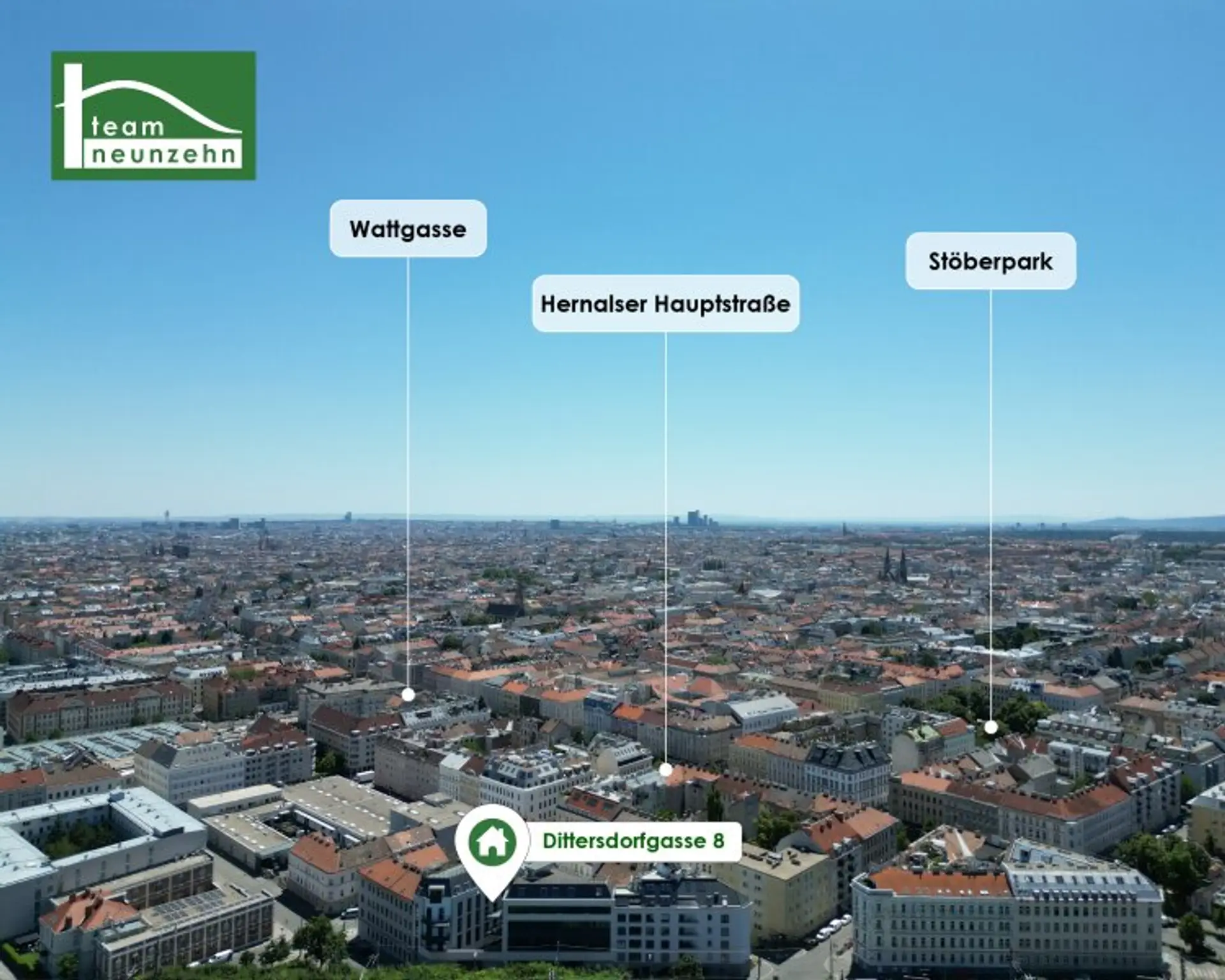 Die Immobilie befindet sich in 1170 Wien, in der Dittersdorfgasse 8, einer ruhigen Wohngegend im Bezirk Hernals. Die Umgebung zeichnet sich durch eine gute Mischung aus urbaner Infrastruktur und Grünflächen aus. In unmittelbarer Nähe gibt es diverse Einkaufsmöglichkeiten, Restaurants und Cafés, die den täglichen Bedarf abdecken. Öffentliche Verkehrsanbindungen sind gut ausgebaut, mit Straßenbahn- und Buslinien, die eine schnelle Verbindung ins Stadtzentrum und zu anderen Bezirken ermöglichen. Erholungsgebiete wie der Schwarzenbergpark und der Wienerwald sind leicht erreichbar und bieten zahlreiche Freizeitmöglichkeiten. Schulen, Kindergärten und medizinische Einrichtungen befinden sich ebenfalls in der Umgebung, wodurch die Lage sowohl für Familien als auch für Berufstätige attraktiv ist.