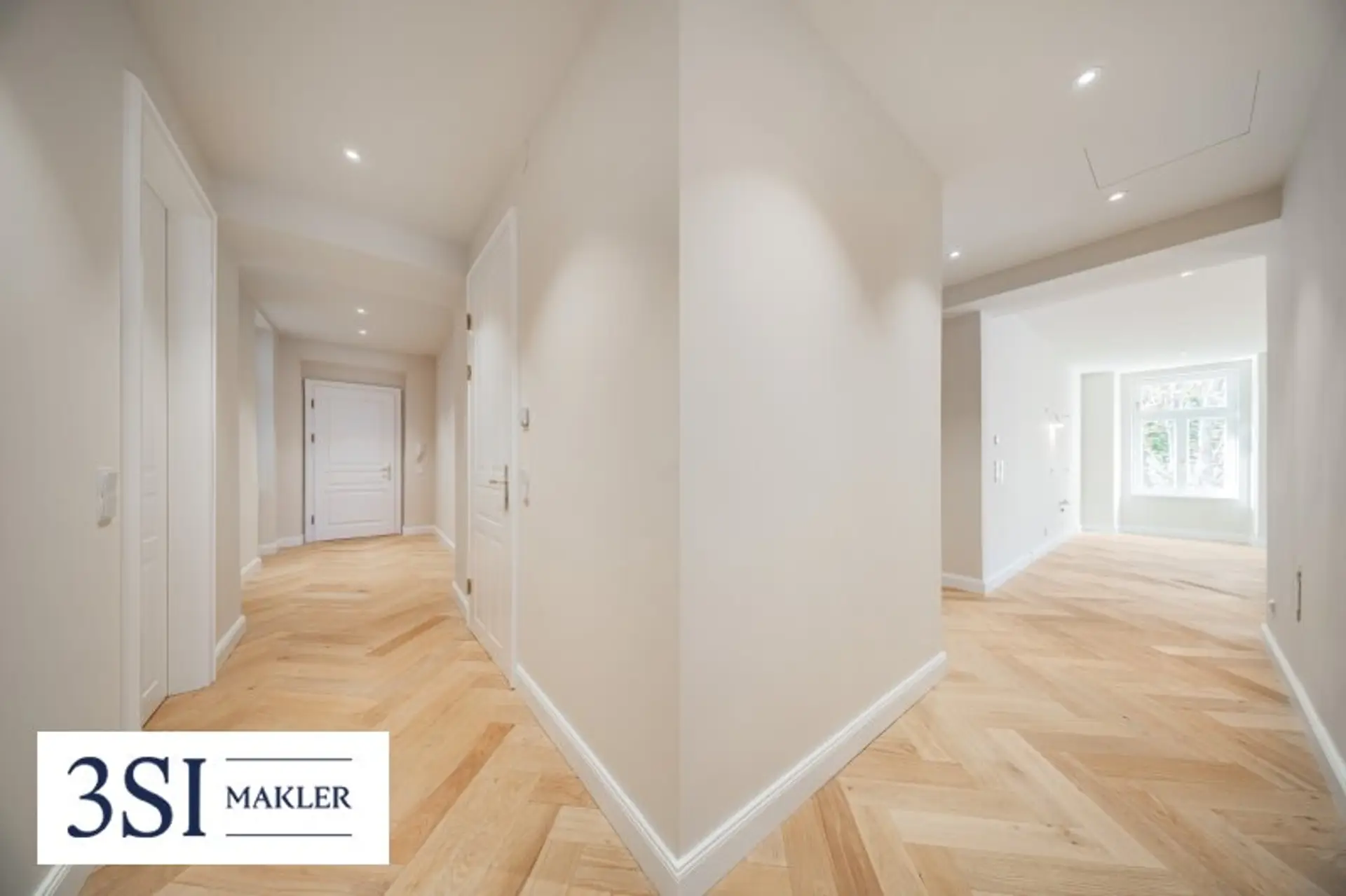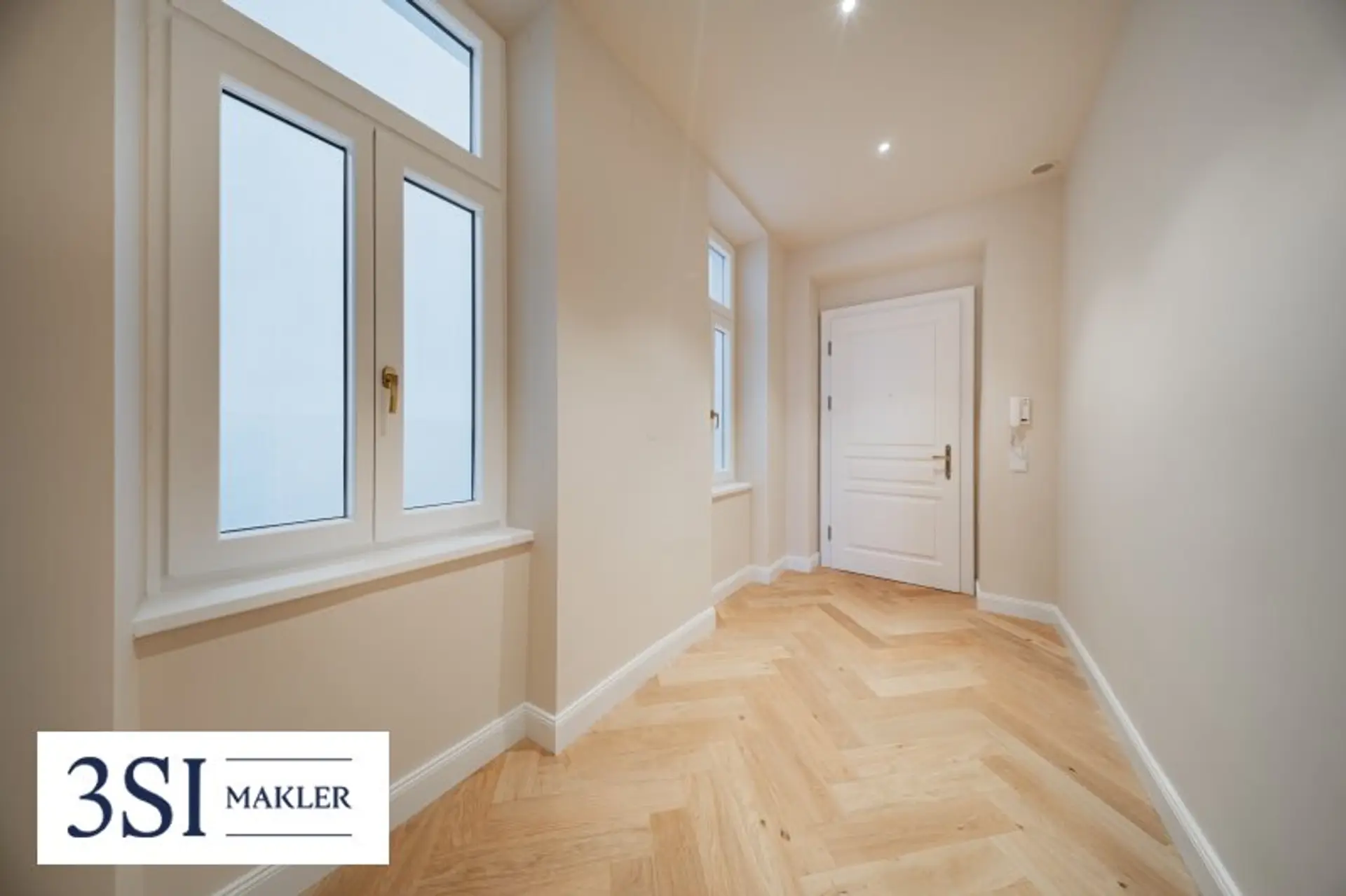 Diese großzügige Wohnung im 2. Obergeschoß vereint stilvolle Altbau-Eleganz mit zeitgemäßem Wohnkomfort. Auf rund 112 m² Wohnfläche sowie zwei Balkonen à ca. 6 m² entfaltet sich ein Zuhause, das gleichermaßen Großzügigkeit, Behaglichkeit und Eleganz vermittelt. Bereits beim Betreten schafft der einladende Vorraum ein Gefühl von Weite. Alle Räume sind zentral begehbar und durch einen angenehm proportionierten Gang miteinander verbunden, der dem Grundriss eine klare, fließende Struktur verleiht.