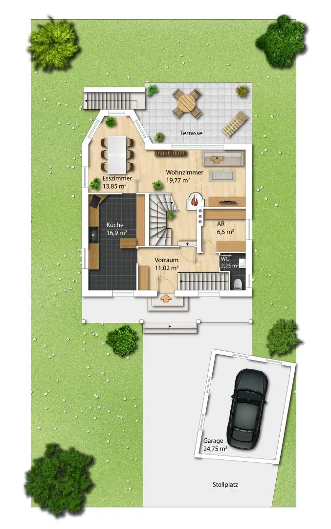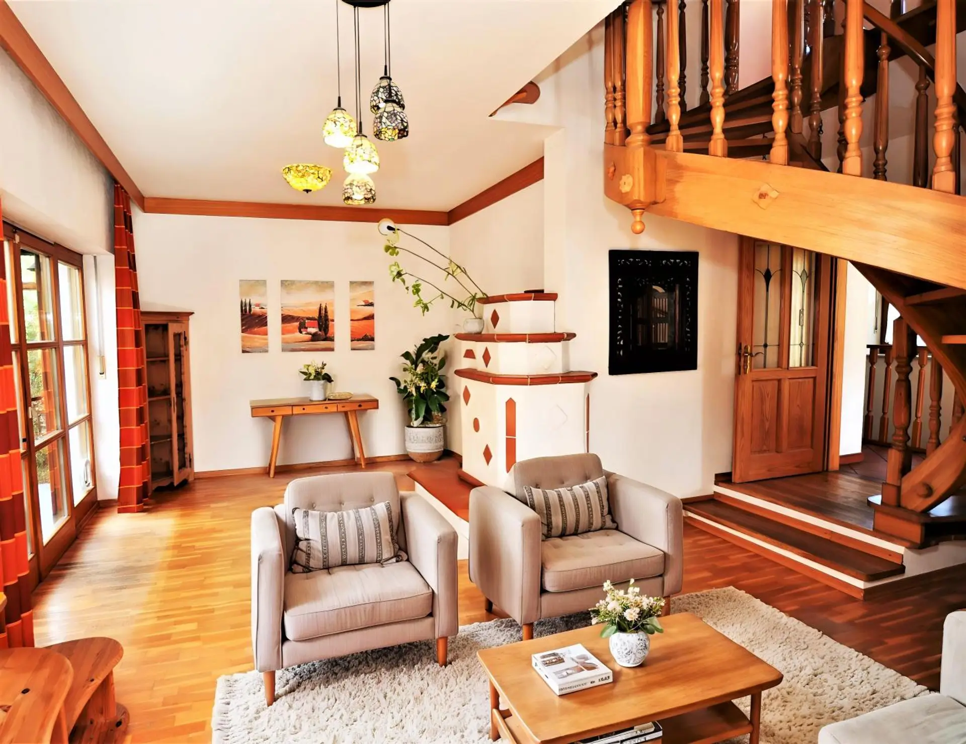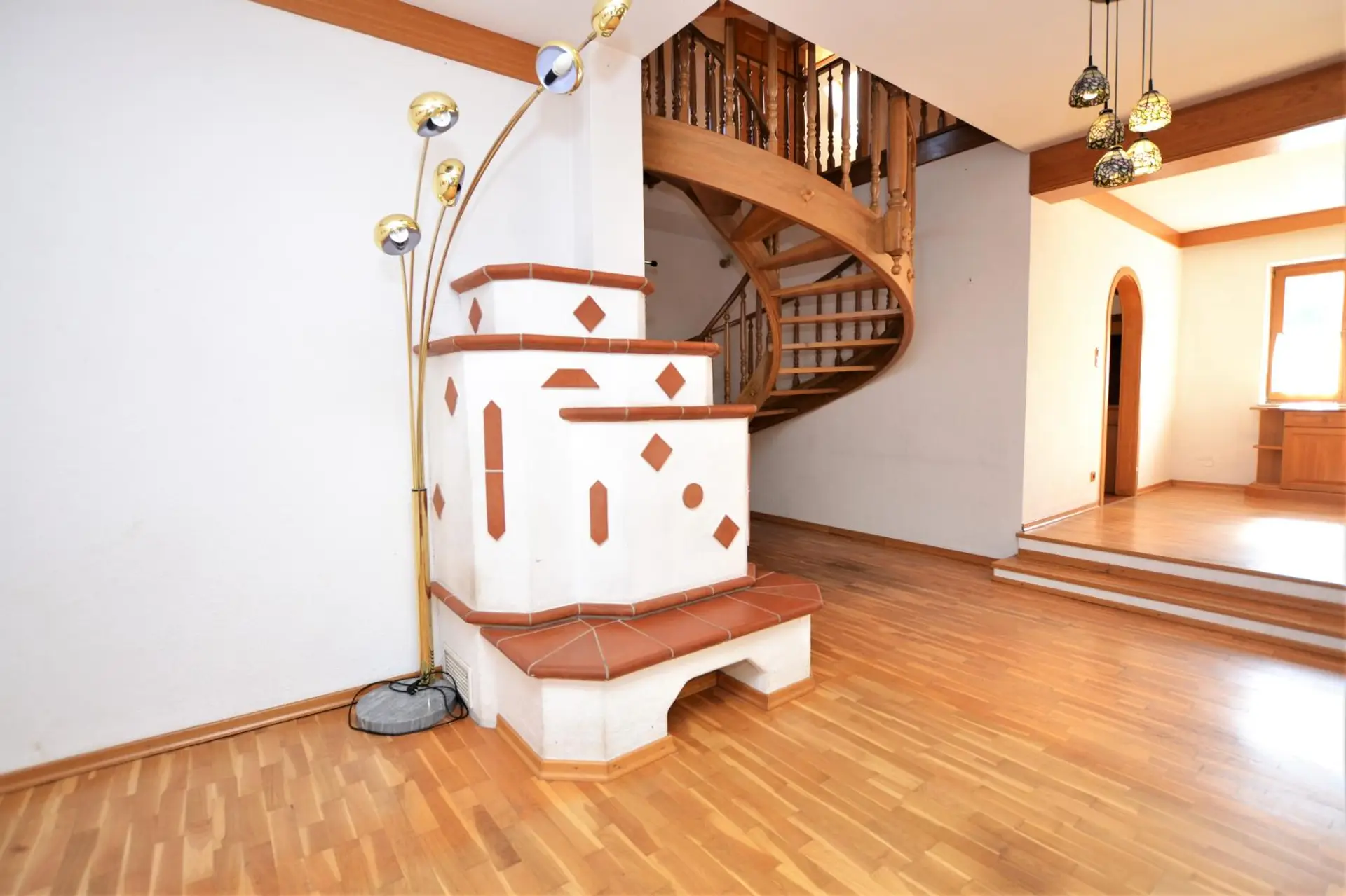 Das Herzstück des Hauses ist der helle Wohnbereich mit Kachelofen, der ein großzügiges Raumgefühl schafft und den Blick ins Grüne öffnet. Dank nachhaltiger Energieversorgung – Pelletsheizung, Fußbodenheizung im gesamten Haus, Solaranlage und Photovoltaikanlage – ist die Immobilie zukunftsorientiert ausgestattet. Das Haus ist komplett unterkellert und bietet Sauna, Hobbyraum, Duschbereich und jede Menge Stauraum. Eine Garage sowie eine Gartenhütte runden das Angebot ab.