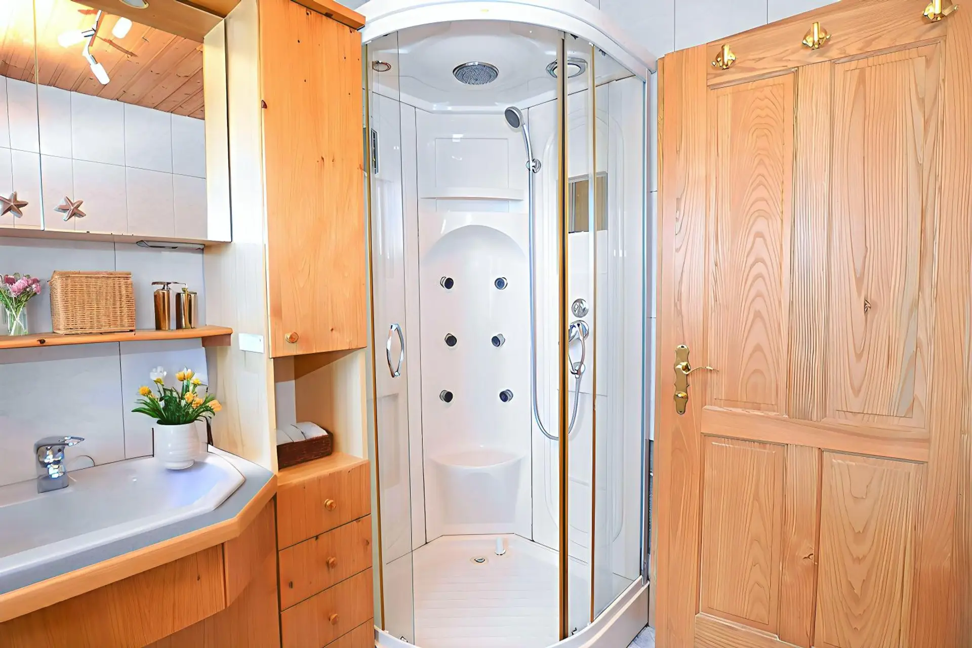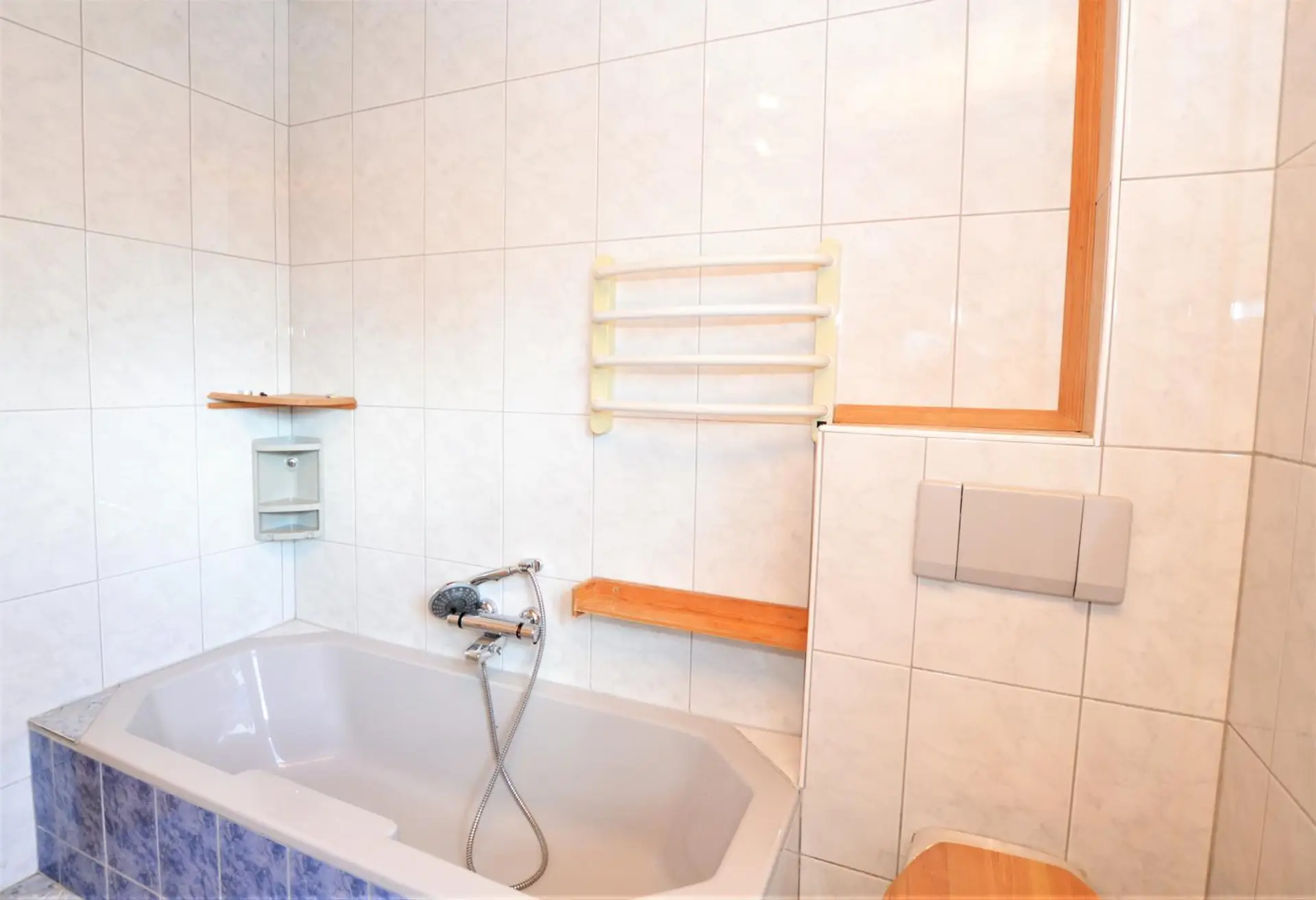Geräumiges Badezimmer mit Badewanne und Dusche