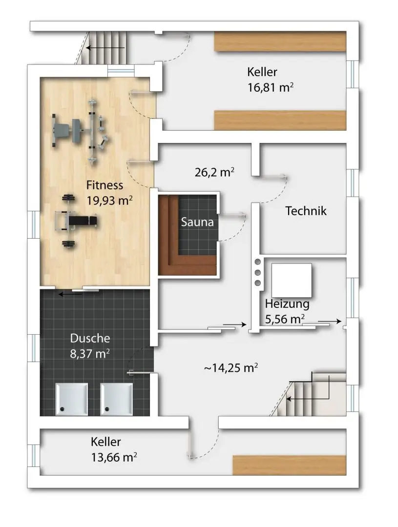 Keller ca. 130 m² – Hobbyraum mit Sauna, Spielekeller oder Teenager-Rückzugsort