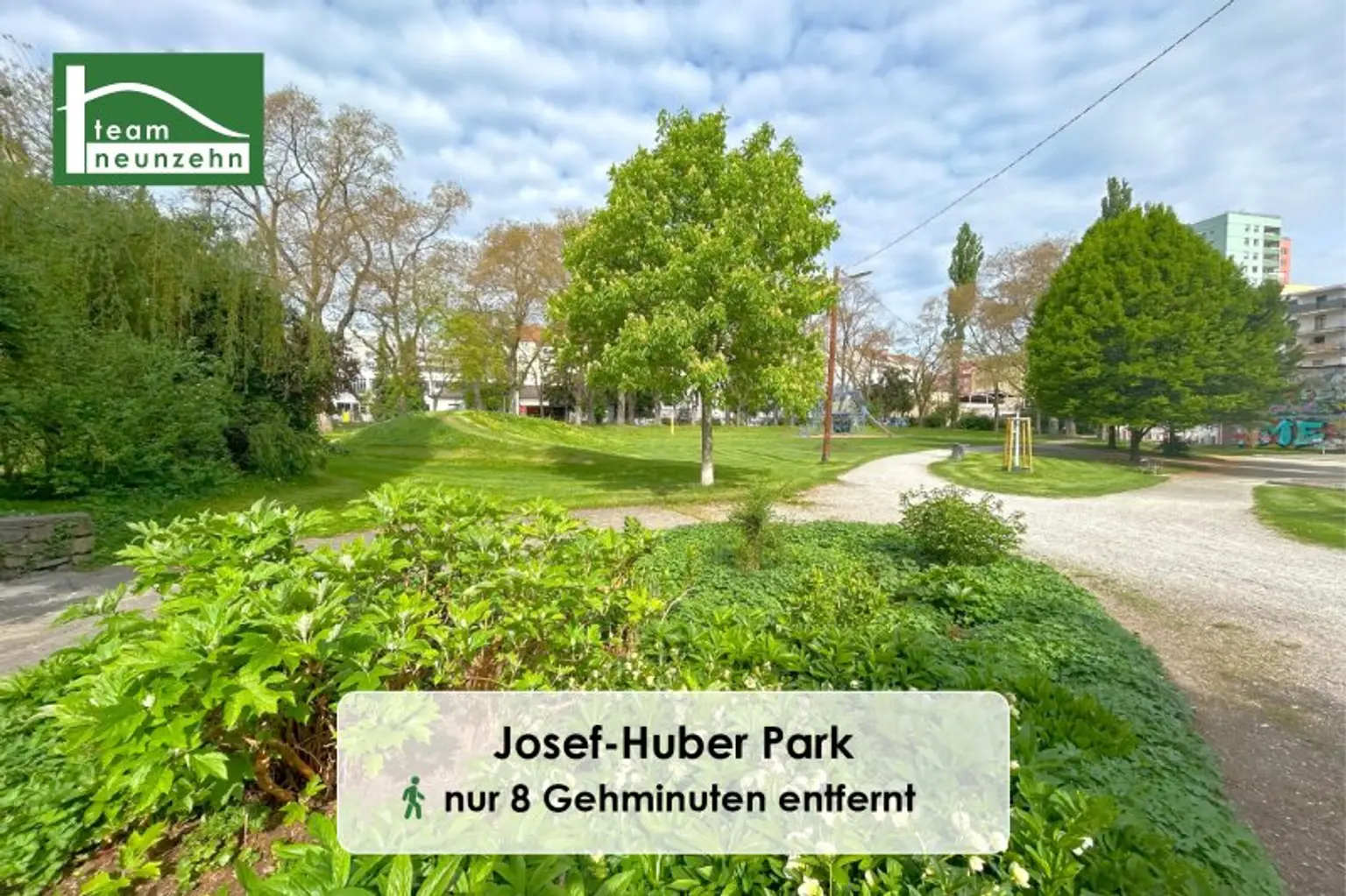 Die Wohnanlage befindet sich in unmittelbarer Nähe zu einem großzügigen Park, der Raum für Bewegung, Spiel und Entspannung bietet. Im Jahr 2024 wurden sämtliche Freiflächen und Fassaden neu gestaltet: Mehr Privatsphäre auf den Terrassen, ein zentraler Spielhof mit Aufenthaltszonen sowie begrünte Lounges mit essbaren Pflanzen schaffen eine einzigartige Wohlfühlatmosphäre mitten in der Stadt.