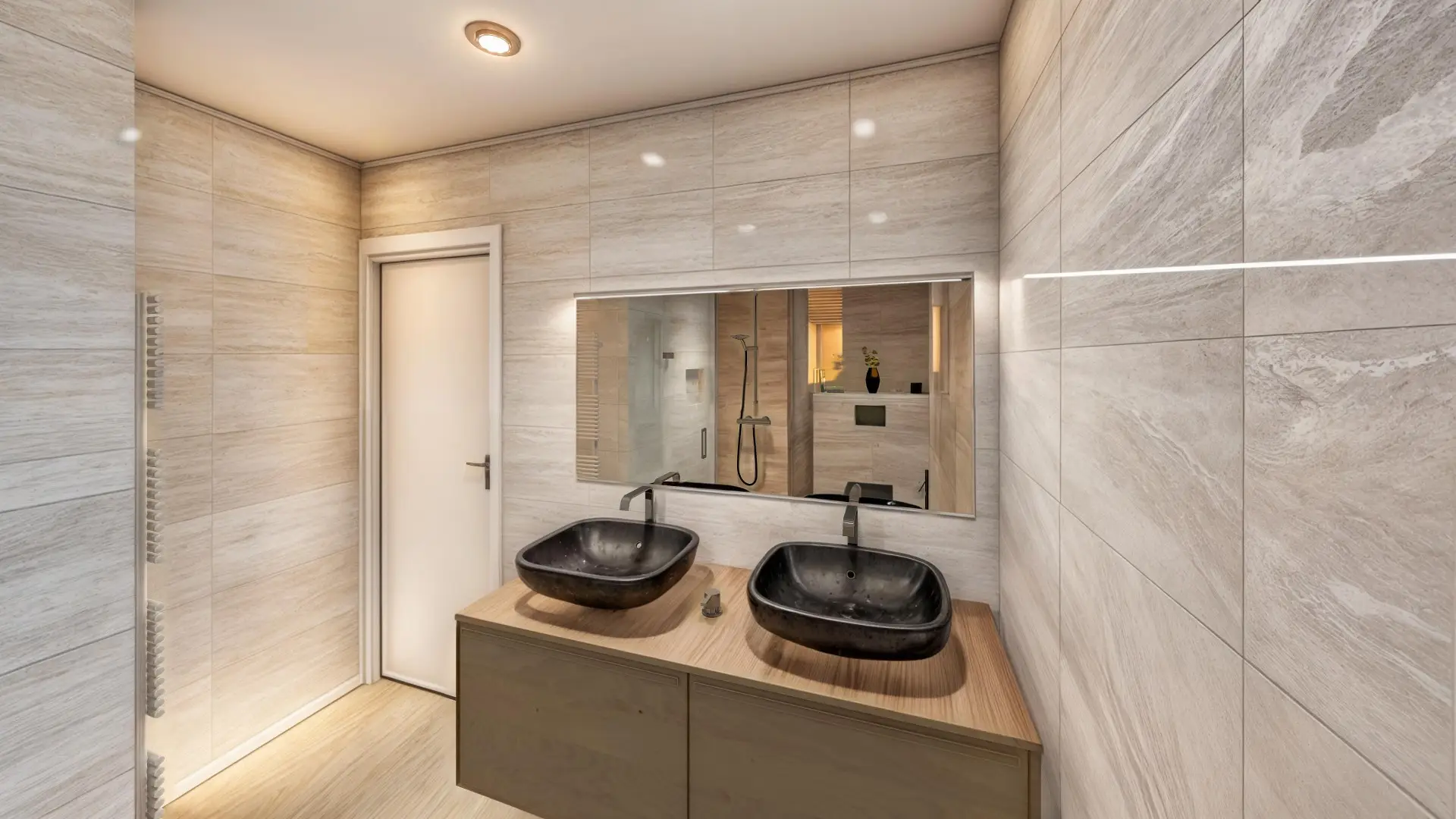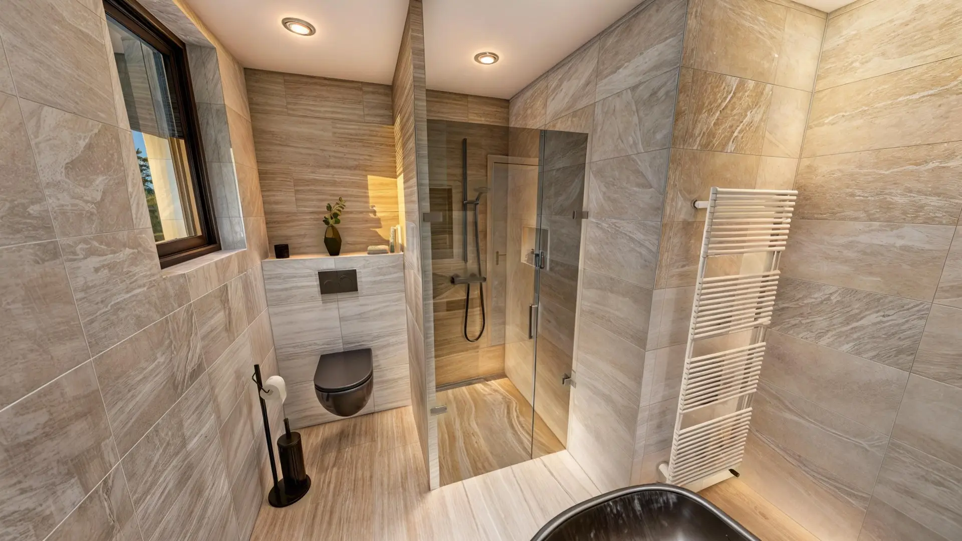 Die Häuser erstrecken sich über drei Etagen (EG, OG, KG) und verfügen jeweils über eine Wohnnutzfläche von ca. 131,11 m². Großzügige Freiflächen (südlich ausgerichtet) stehen ebenfalls zur Verfügung - Grünfläche ca. 184,86m²/ Terrasse ca. 31,98m² / Balkon ca. 10,51 m² . Die fünf Zimmer lassen sich flexibel als Schlaf-, Kinder-, Fitness- oder Spielräume nutzen. Die Ausstattung ist hochwertig und exklusiv und umfasst unter anderem großformatige Fliesen (60 × 120 cm), Unterputzarmaturen, Echtholz-Eichenparkett, zargenlose Innentüren, Glasgeländer, 3-fach Isolierfenster, Raffstores, eine Klimaanlage, Wärmepumpe sowie Fußbodenheizung. Ergänzt wird das Konzept durch eine moderne Eingangstür mit Fingerprint-System.