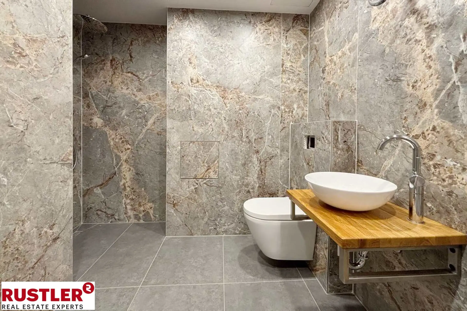 Im 1. Obergeschoss erwartet Sie eine moderne Wohnung mit ca. 75,9 m² Wohnfläche und ca. 17,7 m² Loggiaflächen. Das Herzstück bildet die ca. 35 m² große Wohnküche mit Zugang zu zwei Loggien. Zwei weitere Zimmer (ca. 13 m² und 10 m²) eignen sich flexibel als Schlaf-, Arbeits- oder Gästezimmer. Modernes Bad mit Dusche und Vollholz-Waschtisch, separates Gäste-WC, Abstellraum, Vorraum und Technikraum mit Waschmaschinenanschluss runden das Raumangebot ab.