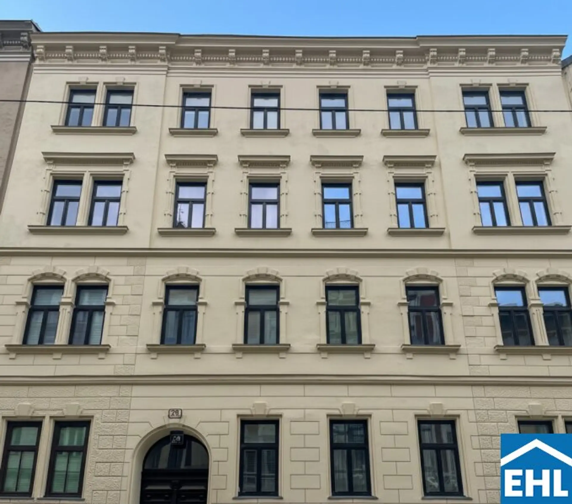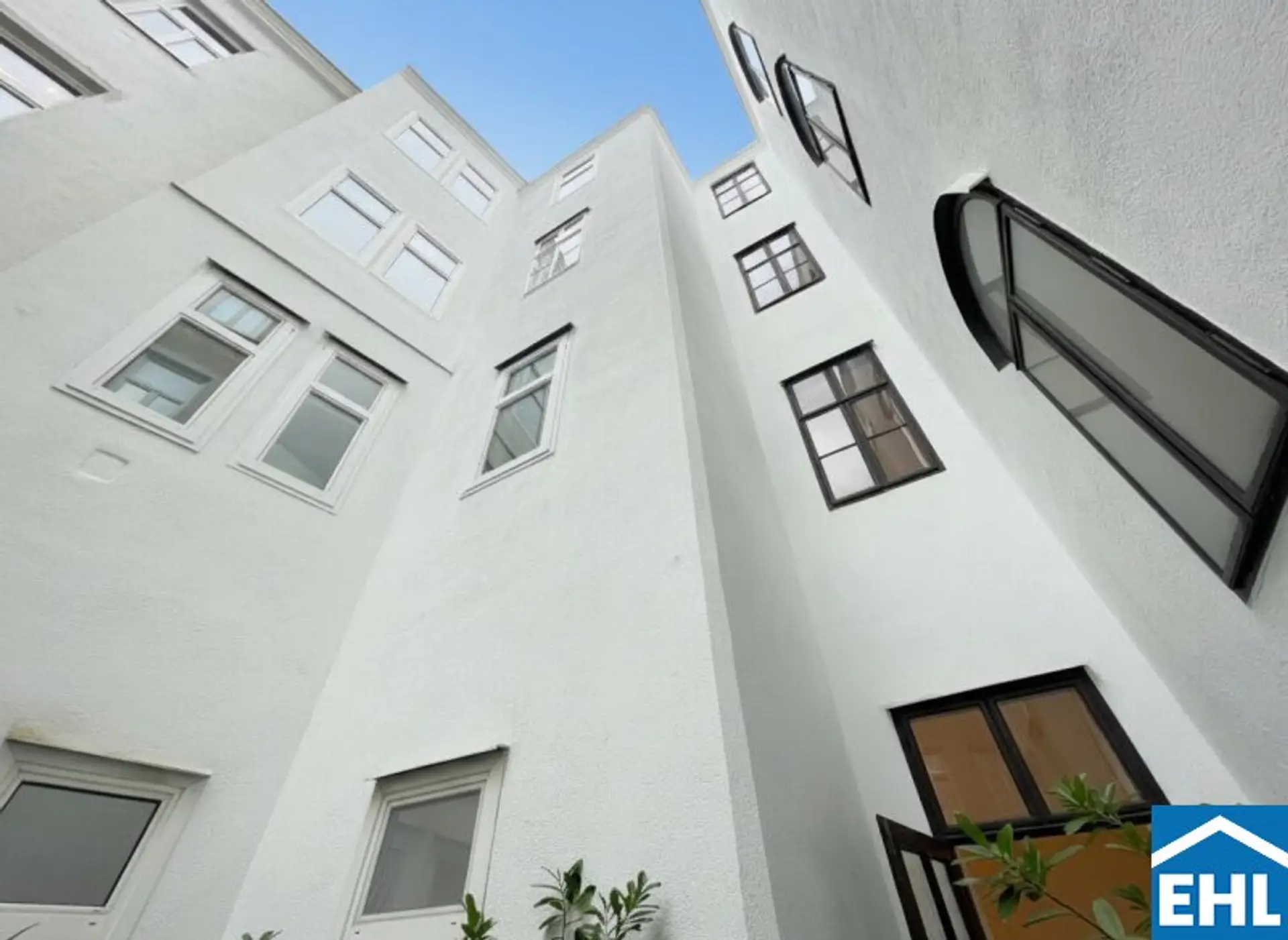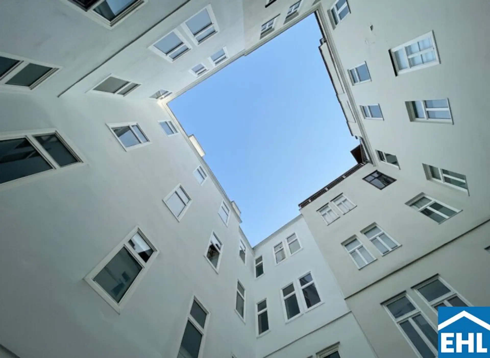 Zusätzlich zu dem gepflegten Innenhof und einem Kellerbateil je Wohnung wird außerdem ein Lift vertraglich zugesichert, dessen Errichtung innerhalb der kommenden drei Jahre erfolgen wird – ein wertvoller Gewinn für das gesamte Gebäude.