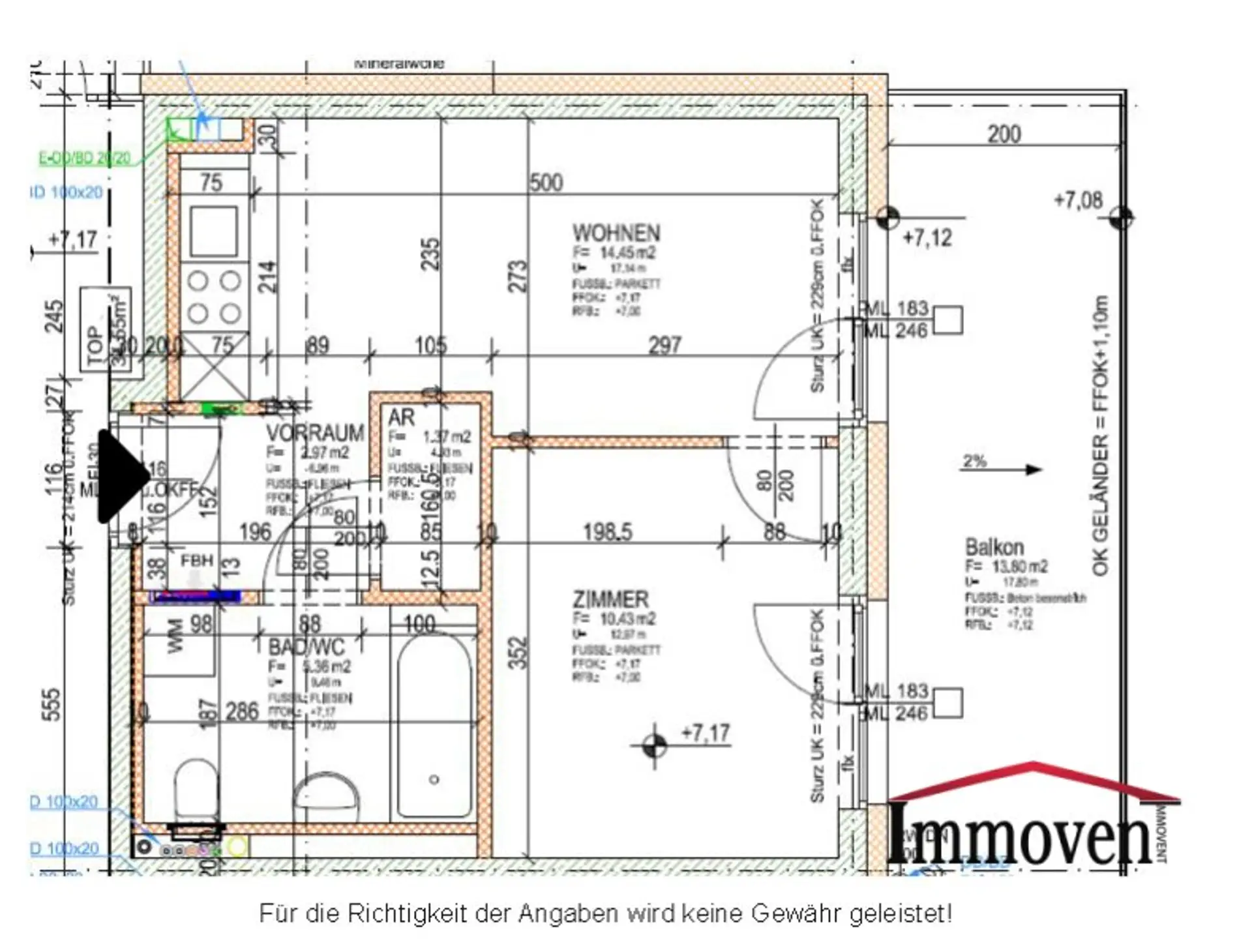 Die obigen Angaben über dieses Objekt erfolgen mit der Sorgfalt eines ordentlichen Immobilienmaklers und basieren auf den Angaben und Informationen des Eigentümers. Daher können wir keine Gewähr für die Richtigkeit der Angaben leisten.