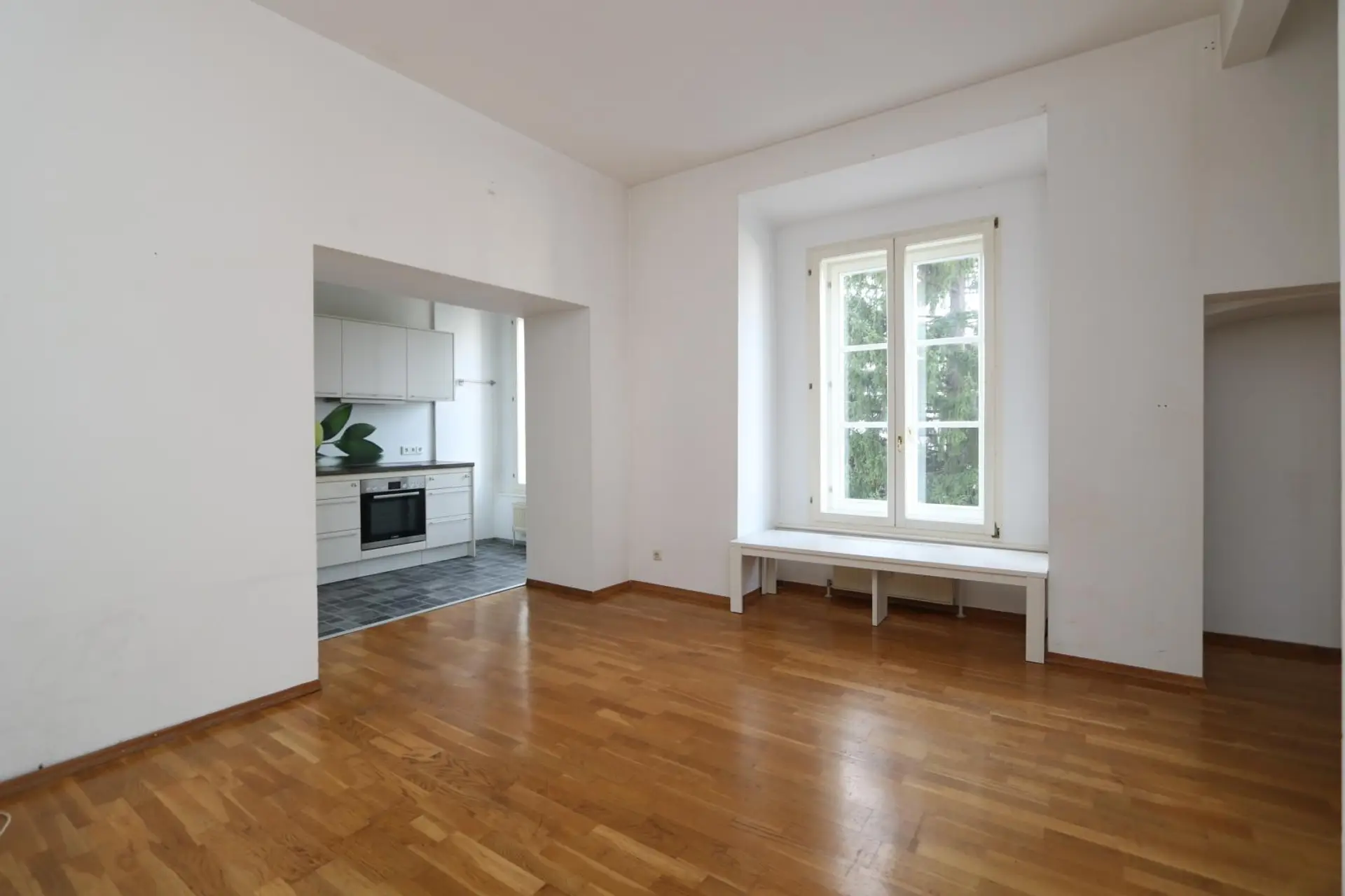 Hohe Räume, große Fenster und stilvolle Details und Parkettböden schaffen ein außergewöhnliches Ambiente:
