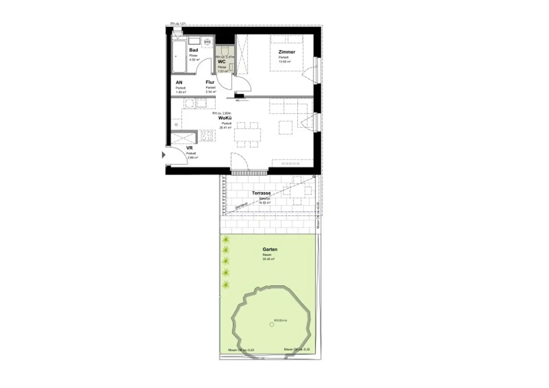 + Garten mit Terrasse: ca. 49,98 m²